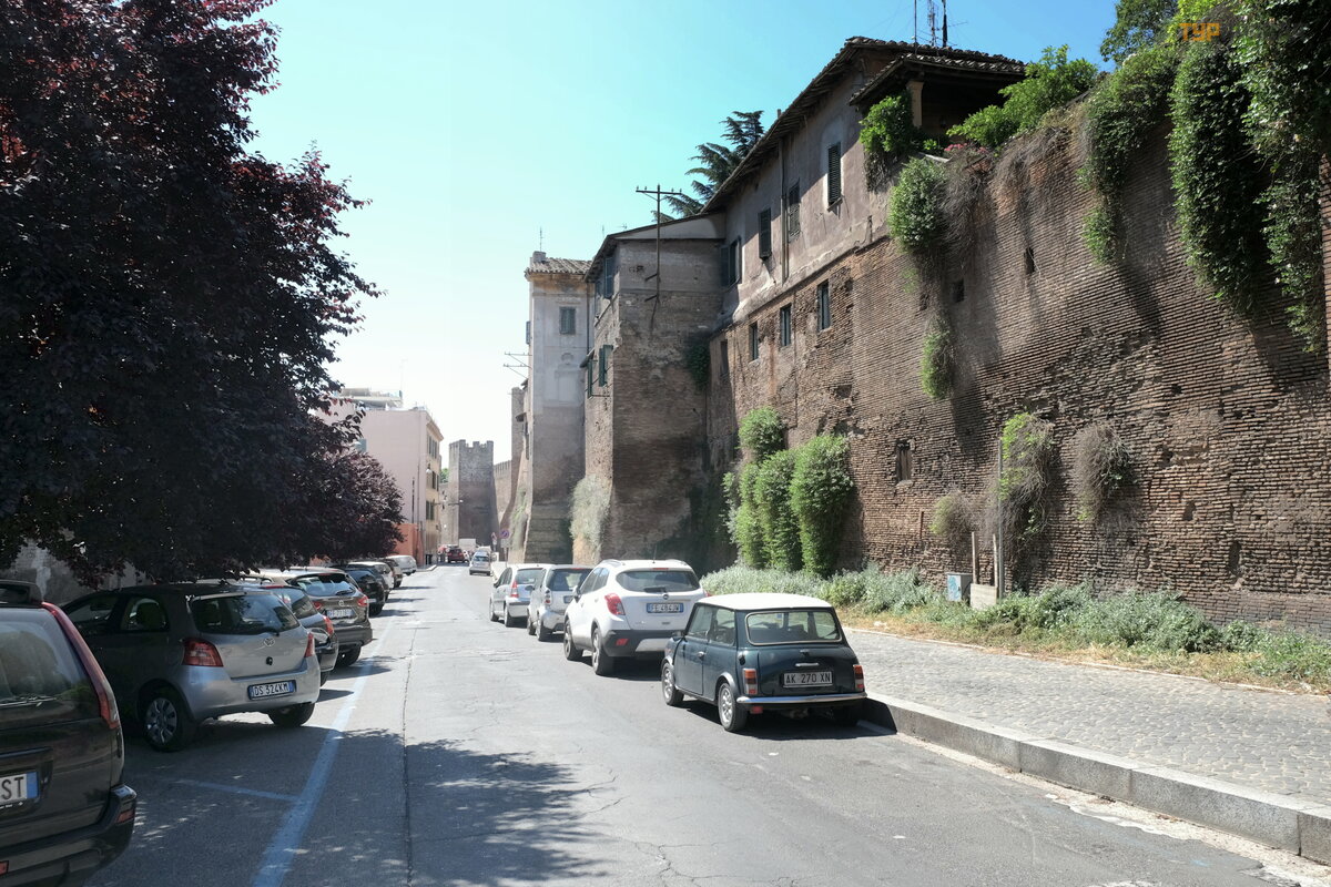 Tada vaikš č iojome palei Aurelijaus sieną . Anksč iau Via Tiburtina prasideda nuo Tiburtine vartų , tai yra perė jimas per Aurelijaus sieną . Nuo č ia prasidė jo senasis kelias į Tivoli.