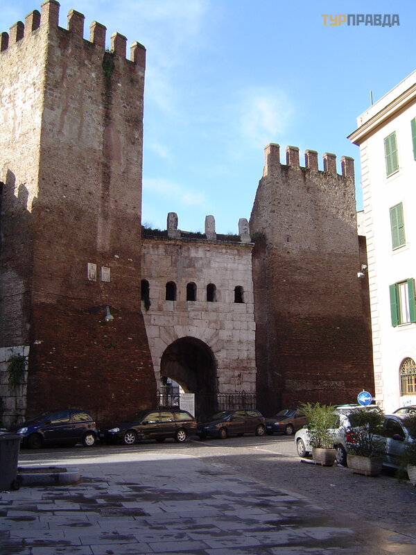 Tiburtino vartai. Arka buvo pastatyta valdant imperatoriui Augustui 5 m. pr. Kr. e. Statant Aurelijaus sieną.271 m. , arka buvo į montuota į sieną ,