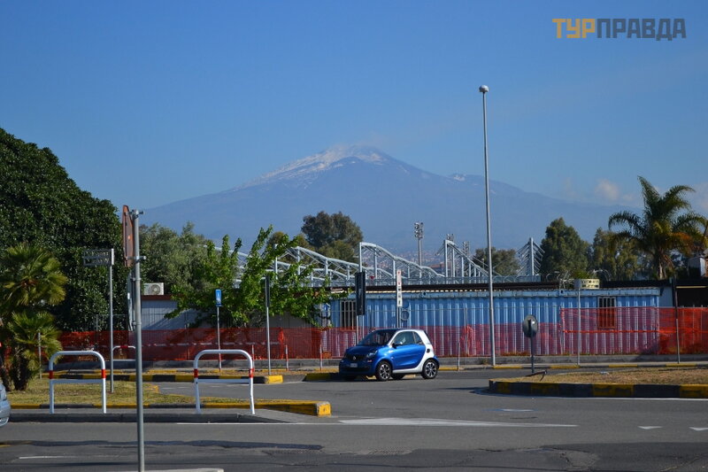 Atvykimo oro uostas – Katanija, iš jo į Giardini Naxos miestą trunka apie valandą . Pirmas dalykas, kurį pamatė me Sicilijoje, buvo Etna. Katanijos regione jis tiesiog pakyla virš horizonto. Sicilieč iai Etną pagarbiai vadina – „kalnu“.