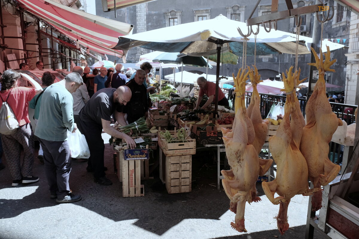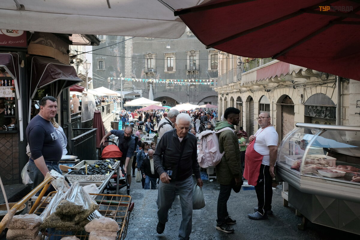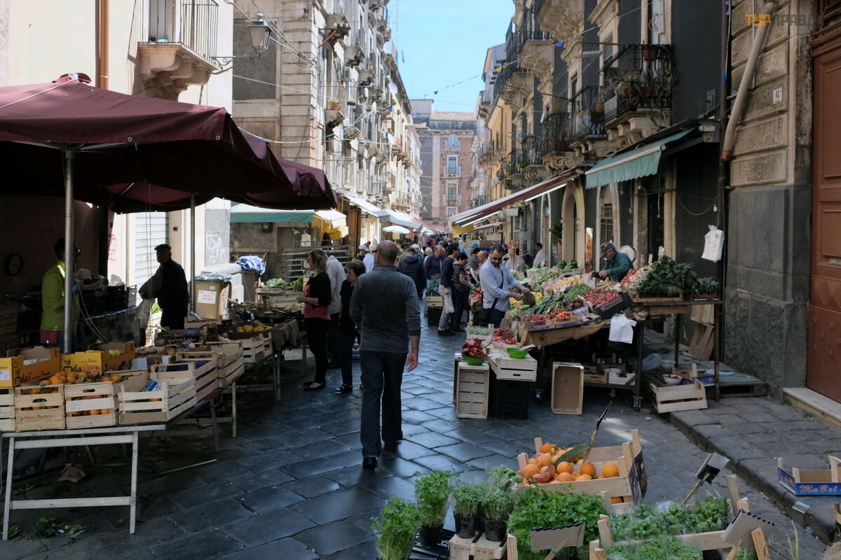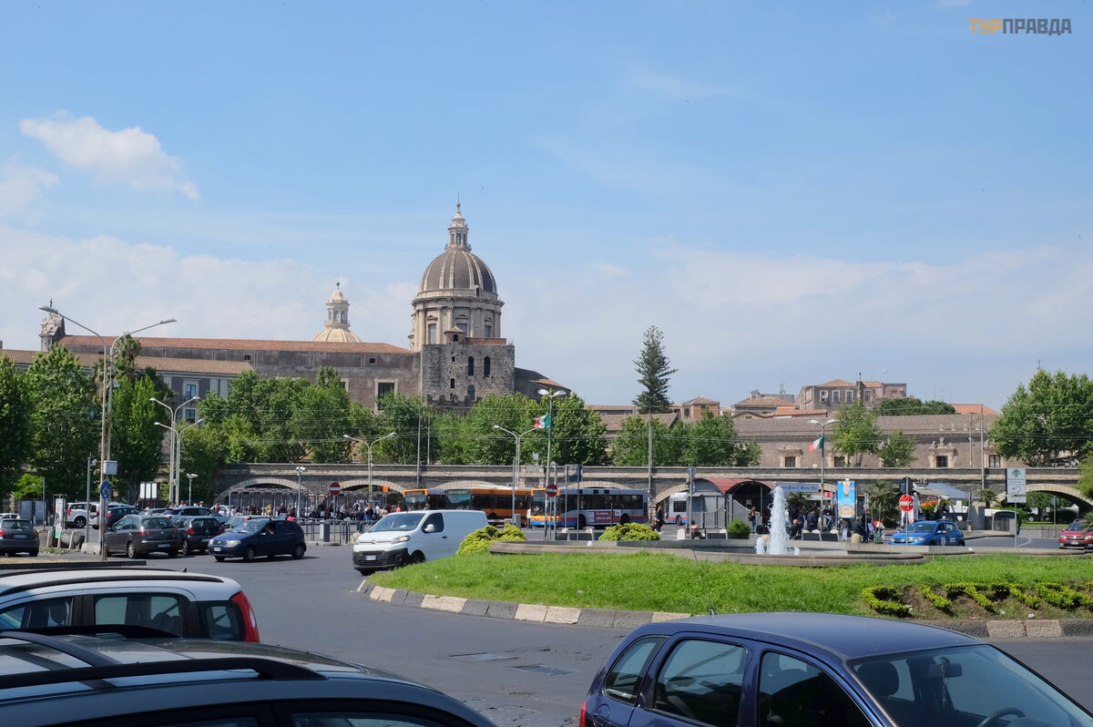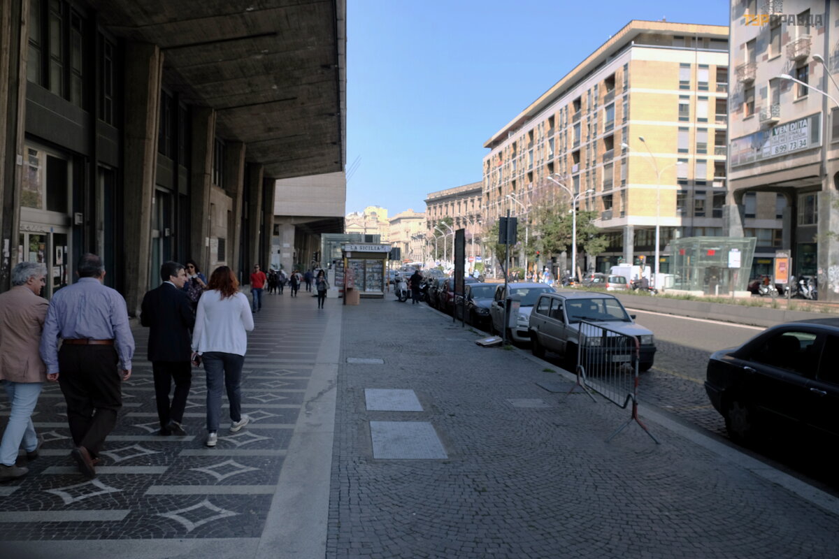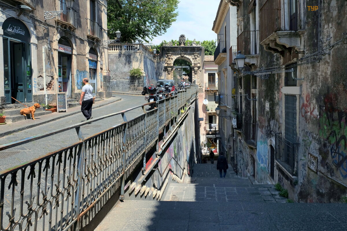 Iš autobusų stoties einame pagrindine Katanijos gatve – Via Etna, kuri tę siasi 3 km iš pietų į š iaurę , pilna istorinių į ž ymybių , daugybė s parduotuvių ir kavinių . Č ia taip pat į sikū rę s vienas didž iausių prekybos centrų „La Rinascente“.