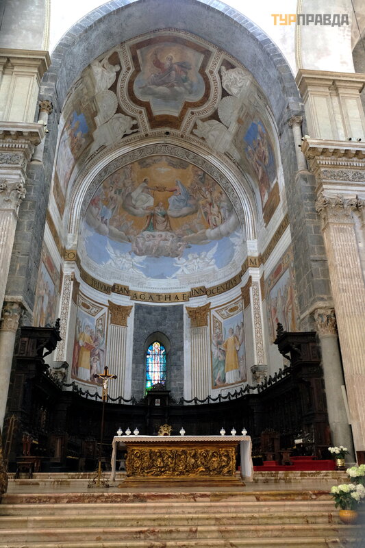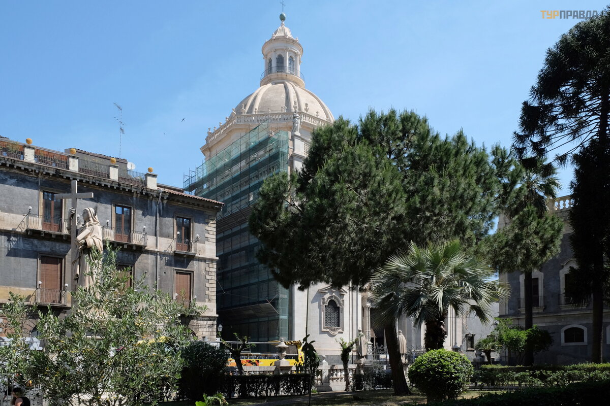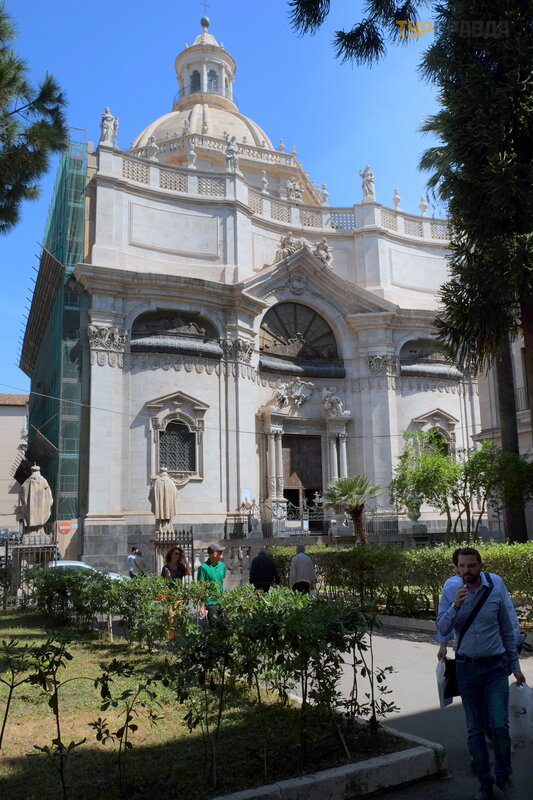 Baž nyč ia pastatyta ant Š v. Agatos vienuolyno (1620 m. ) griuvė sių , kurie neiš stovė jo net 100 metų ir sugriuvo, kaip ir dauguma Katanijos pastatų , per stipriausią.1693 m. ž emė s drebė jimą .