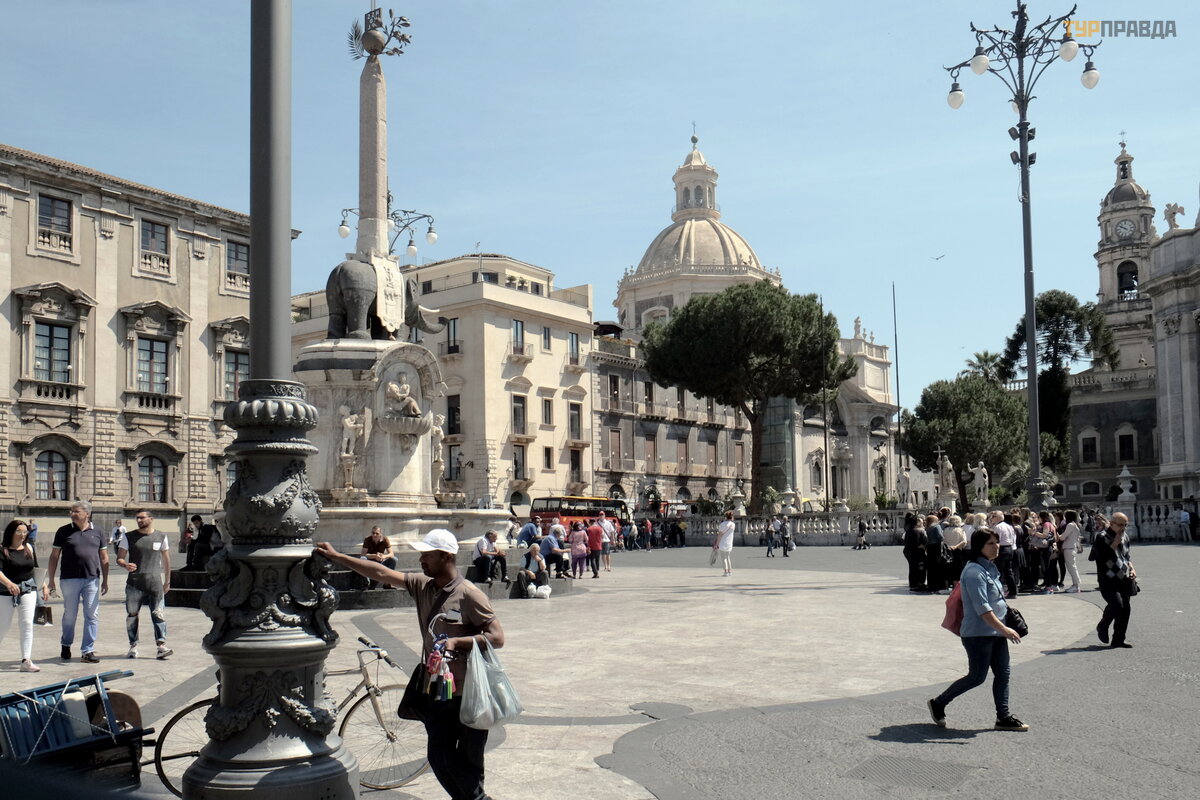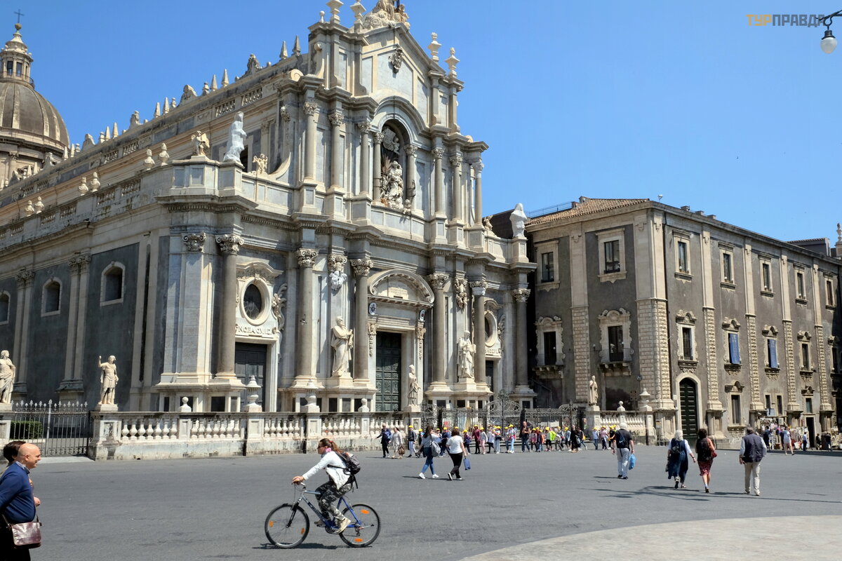 Puikus Piazza del Duomo baroko architektū ros ansamblis taip pat yra Giovanni Battista Vaccarini kū rinys. Tai viena graž iausių aikš č ių Italijoje, kurią aš mač iau.