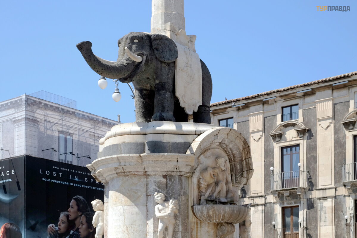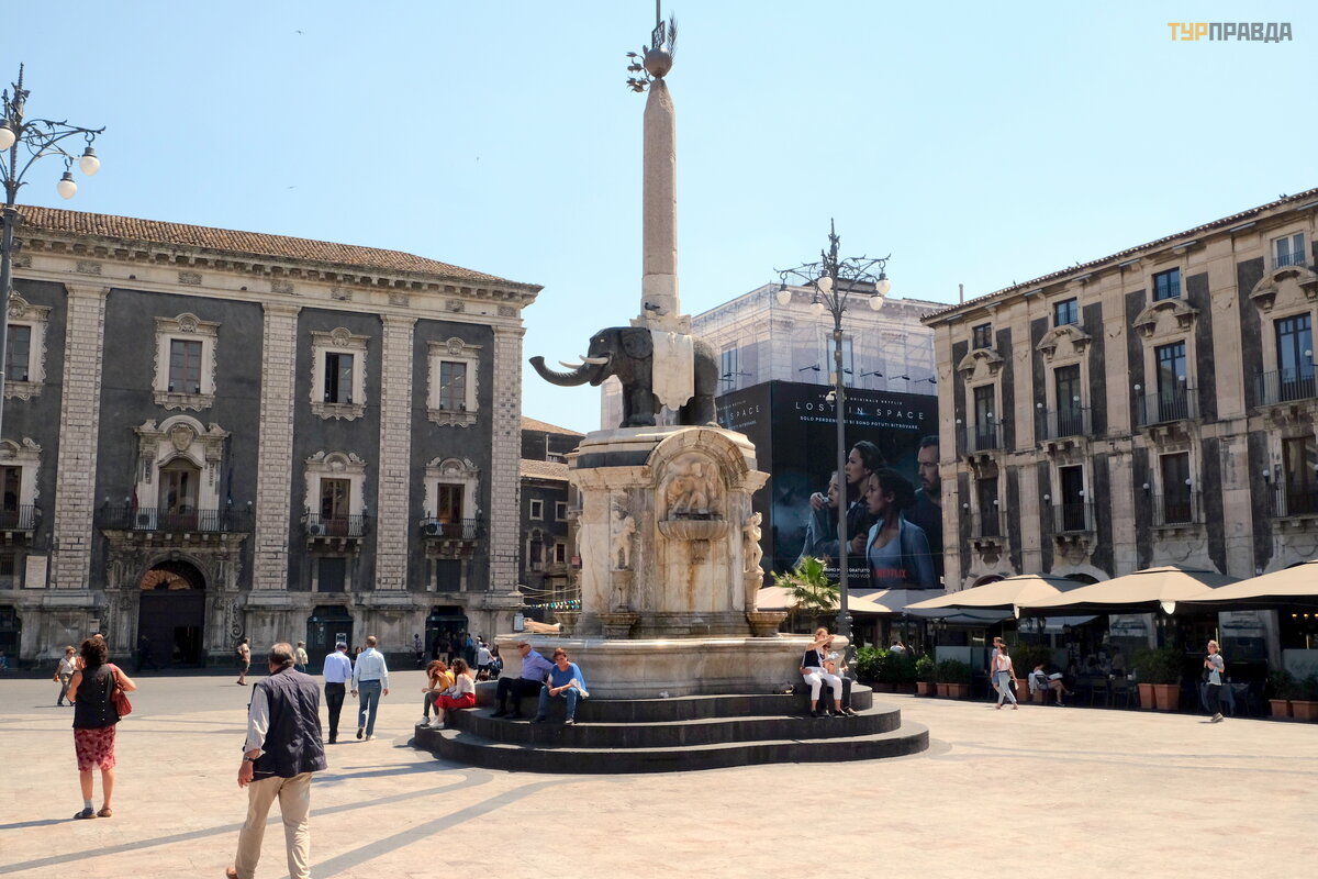 Prieš š į pastatą Vaccarini suprojektavo fontaną , sudarytą iš obelisko ant dramblio Lyotrou (Katanijos simbolio) nugaros (1736).