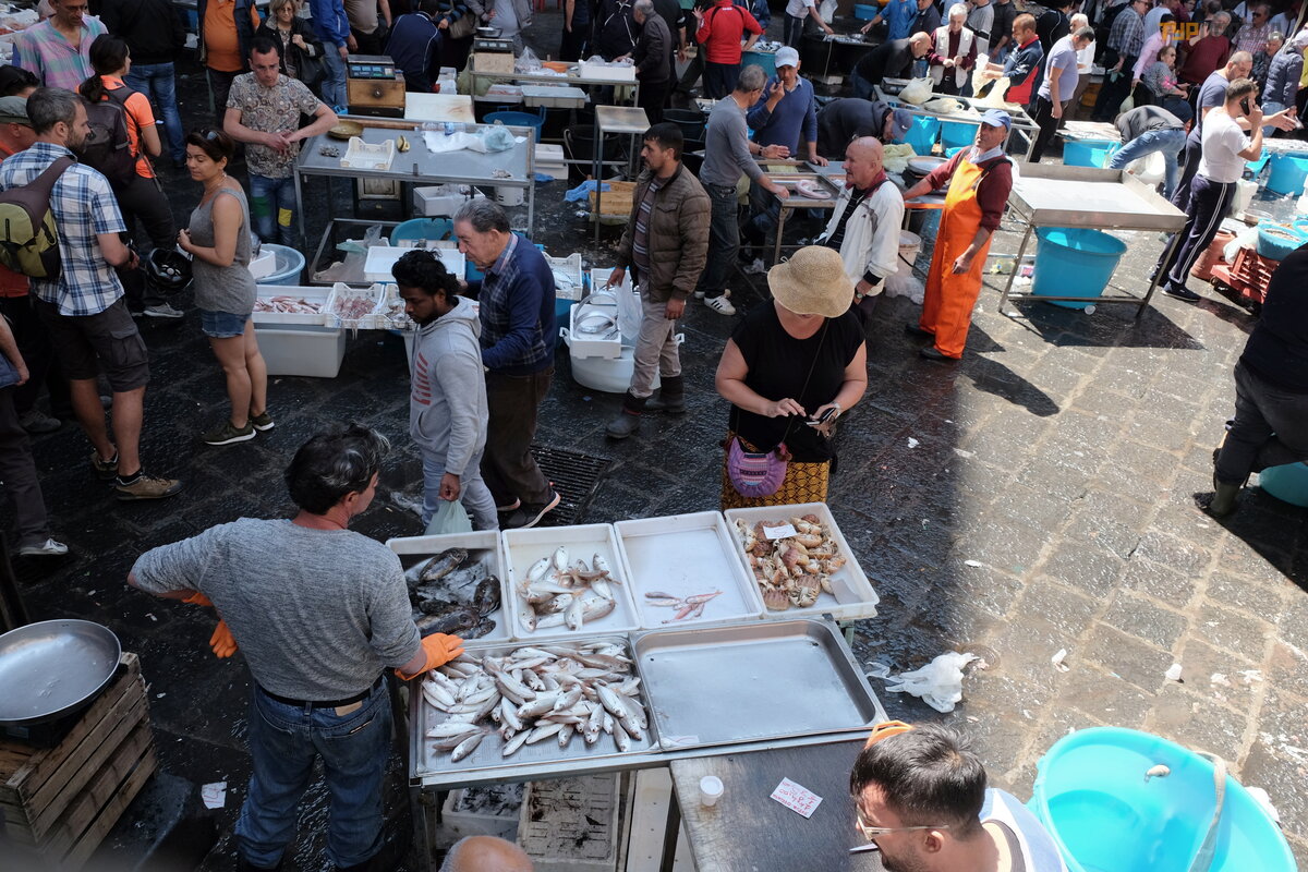 Jei nusileisite už fontano, pateksite į garsų jį ž uvies turgų :