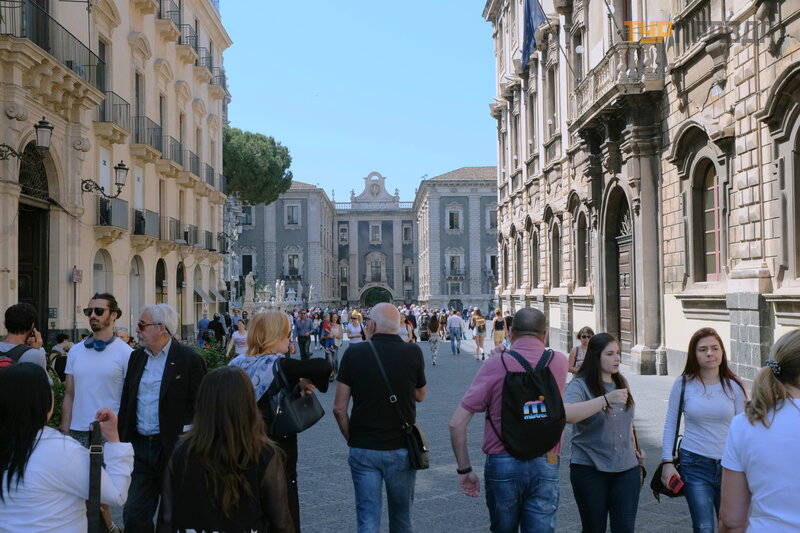 Iš Palazzo dell Universita ir Palazzo San Giuliano eikime į Piazza Universita, kurią sukū rė Vaccarini. Katanijos universitetas yra pirmasis universitetas Sicilijoje, į kurtas 1434 m.
