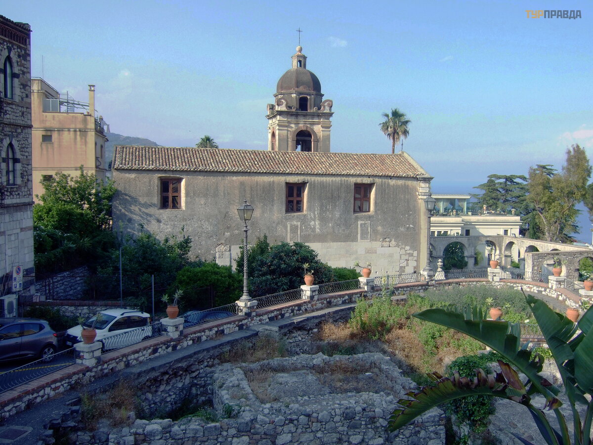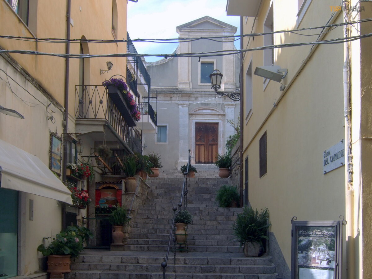 Virš Chiesa del Carmine di Taormina baž nyč ios: