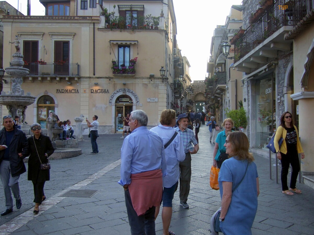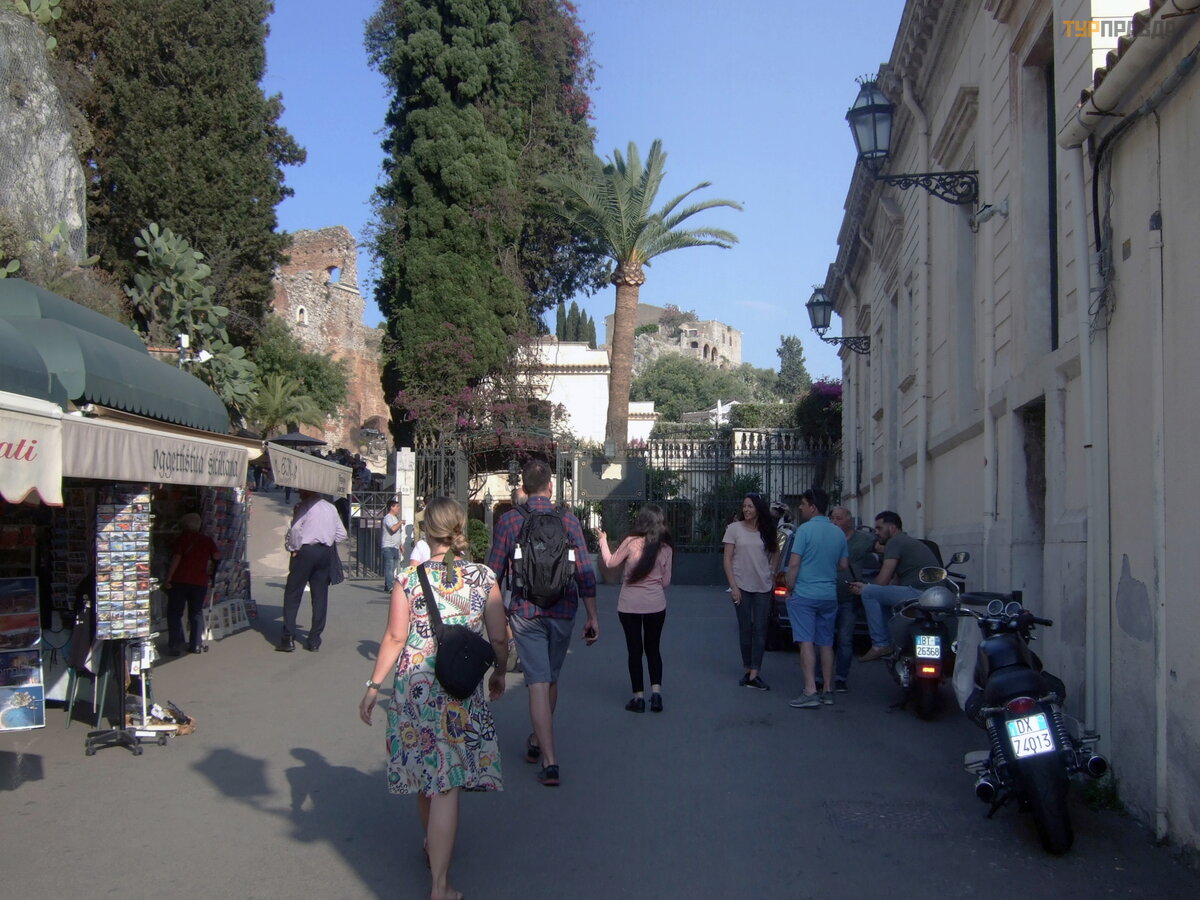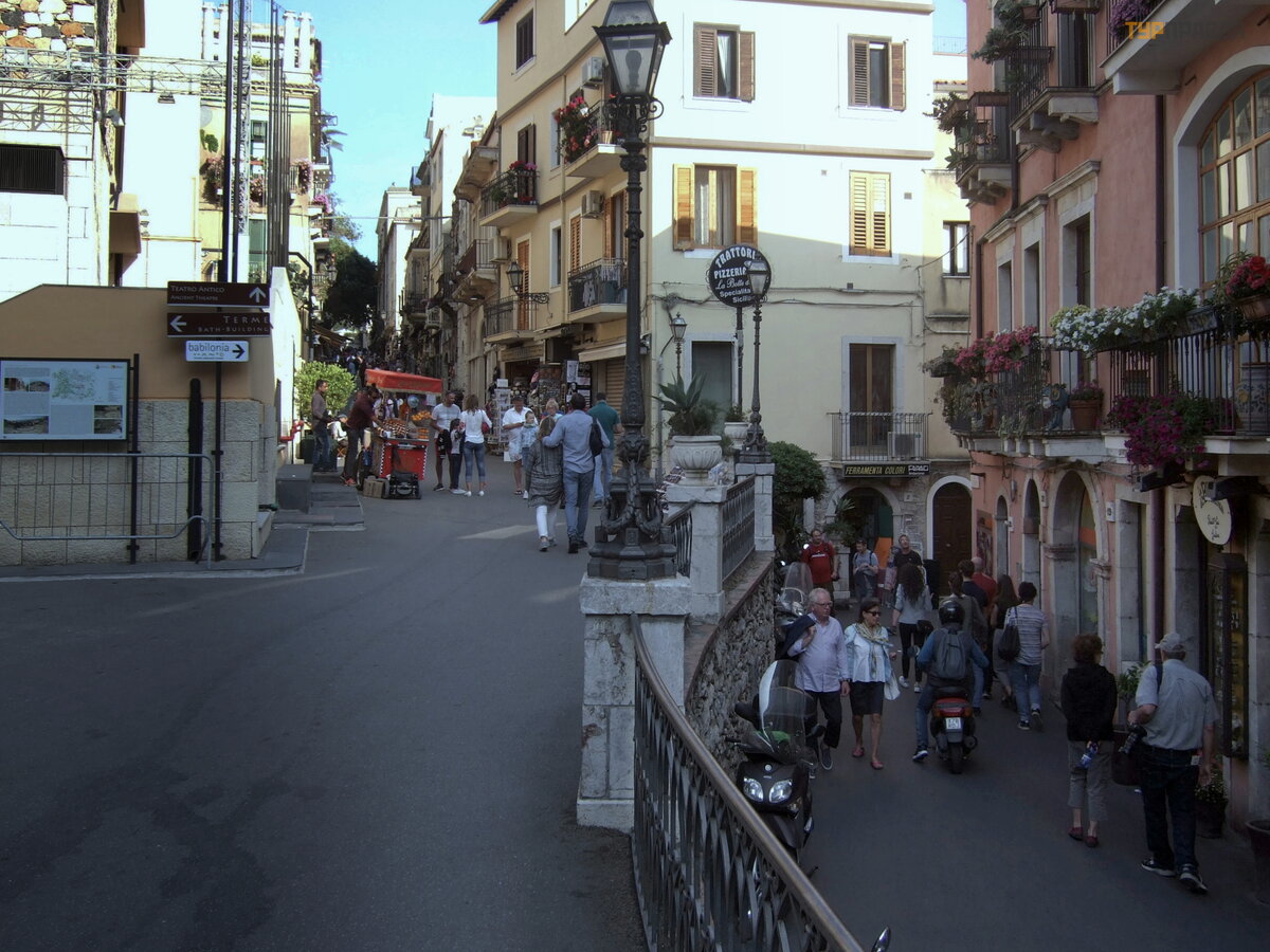 Taorminą daugelis laiko graž iausiu Sicilijos miestu, labai populiaria ir gyvybinga vieta. Paplū dimiai yra apač ioje, todė l ten poilsiautojai arba ilgai leidž iasi ž emyn ir aukš tyn keliais-laiptais, arba funikulieriumi (ten kaž kodė l vadinami „funikuliu“). Kelionė s į vieną pusę kaina tada buvo 3 eurai, yra savaitinė s kelionių kortelė s.