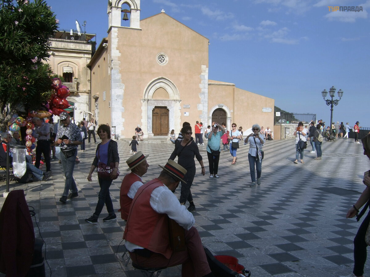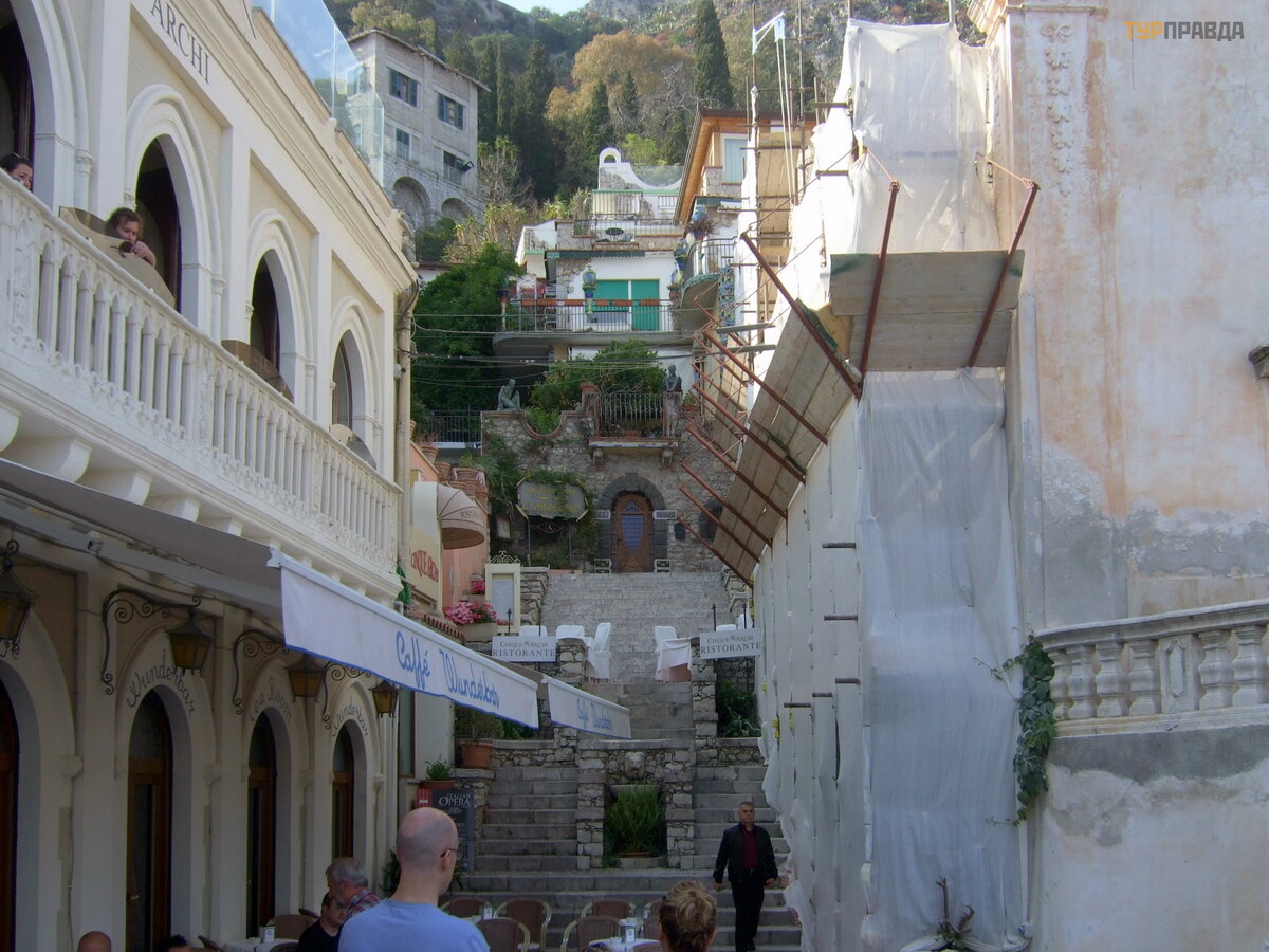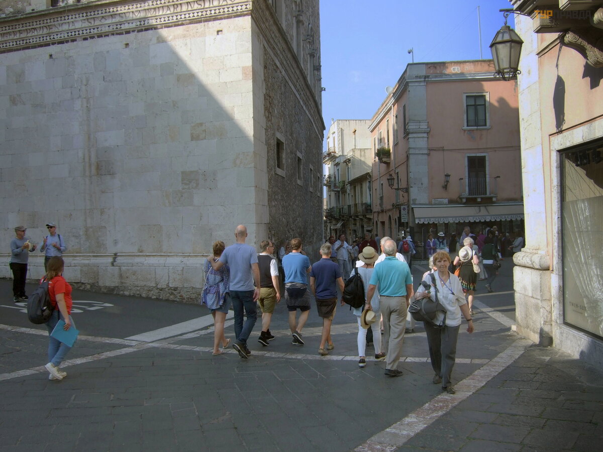 Taorminą daugelis laiko graž iausiu Sicilijos miestu, labai populiaria ir gyvybinga vieta. Paplū dimiai yra apač ioje, todė l ten poilsiautojai arba ilgai leidž iasi ž emyn ir aukš tyn keliais-laiptais, arba funikulieriumi (ten kaž kodė l vadinami „funikuliu“). Kelionė s į vieną pusę kaina tada buvo 3 eurai, yra savaitinė s kelionių kortelė s.