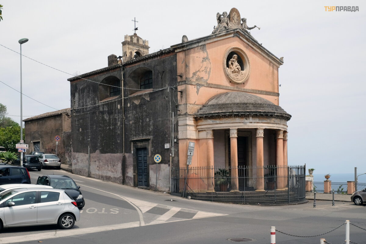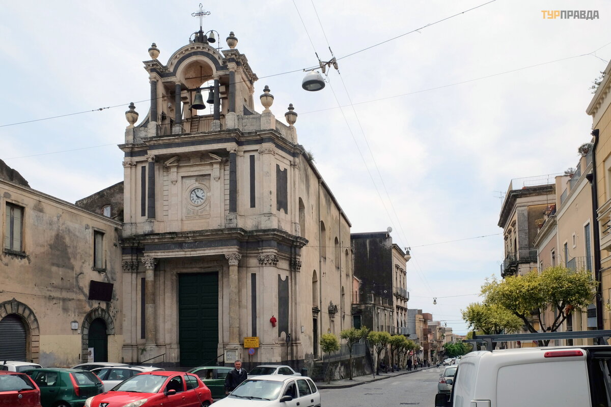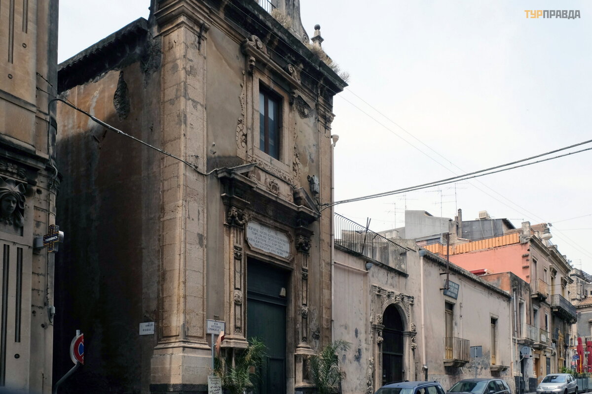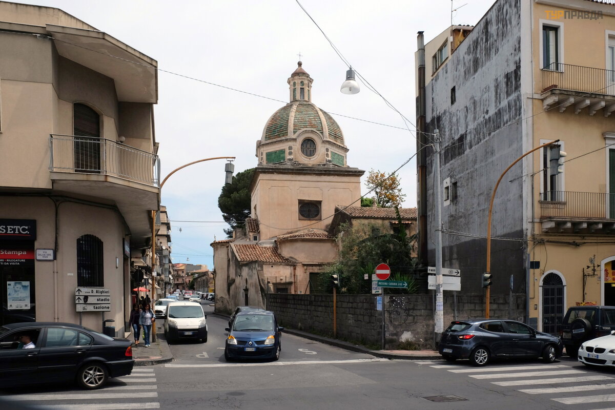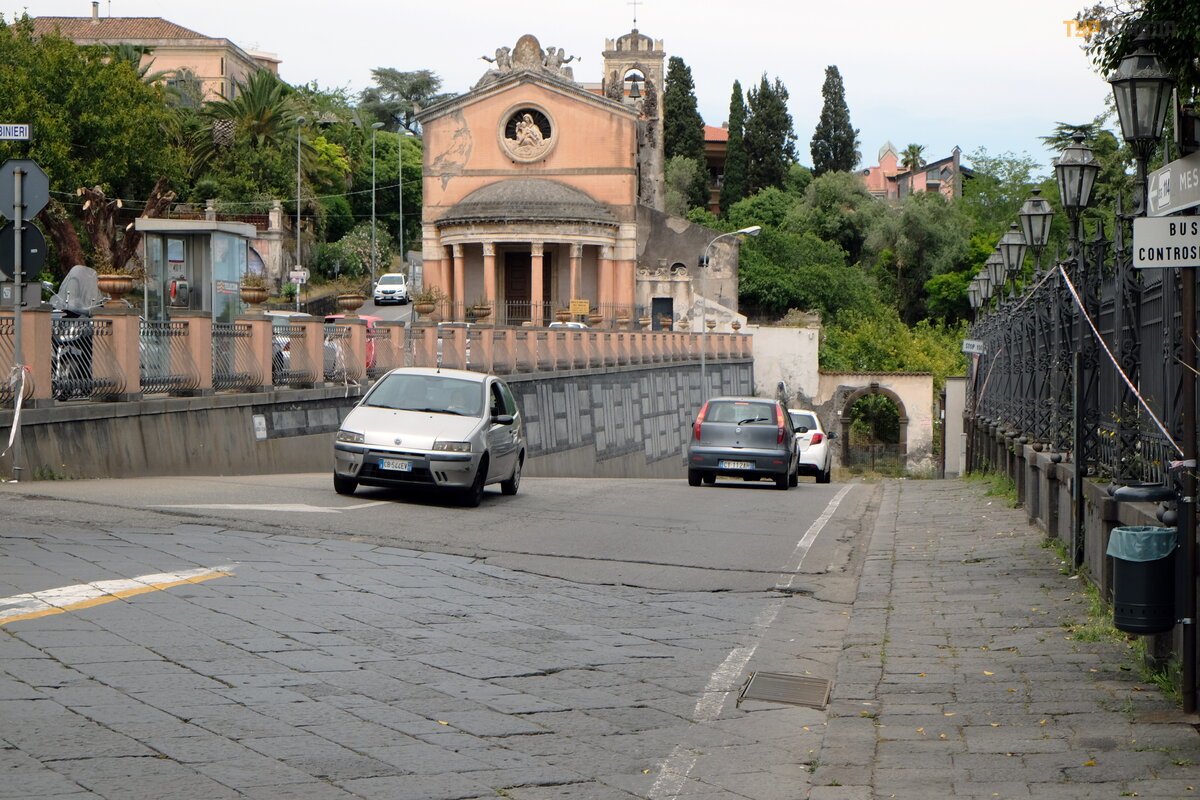 Via Galatea sankryž oje yra Santa Maria del Carmelo baž nyč ia, pastatyta 1554 m. , atstatyta po 1693 m. ž emė s drebė jimo. Dabartinis fasadas yra XVIII a. pabaigos.