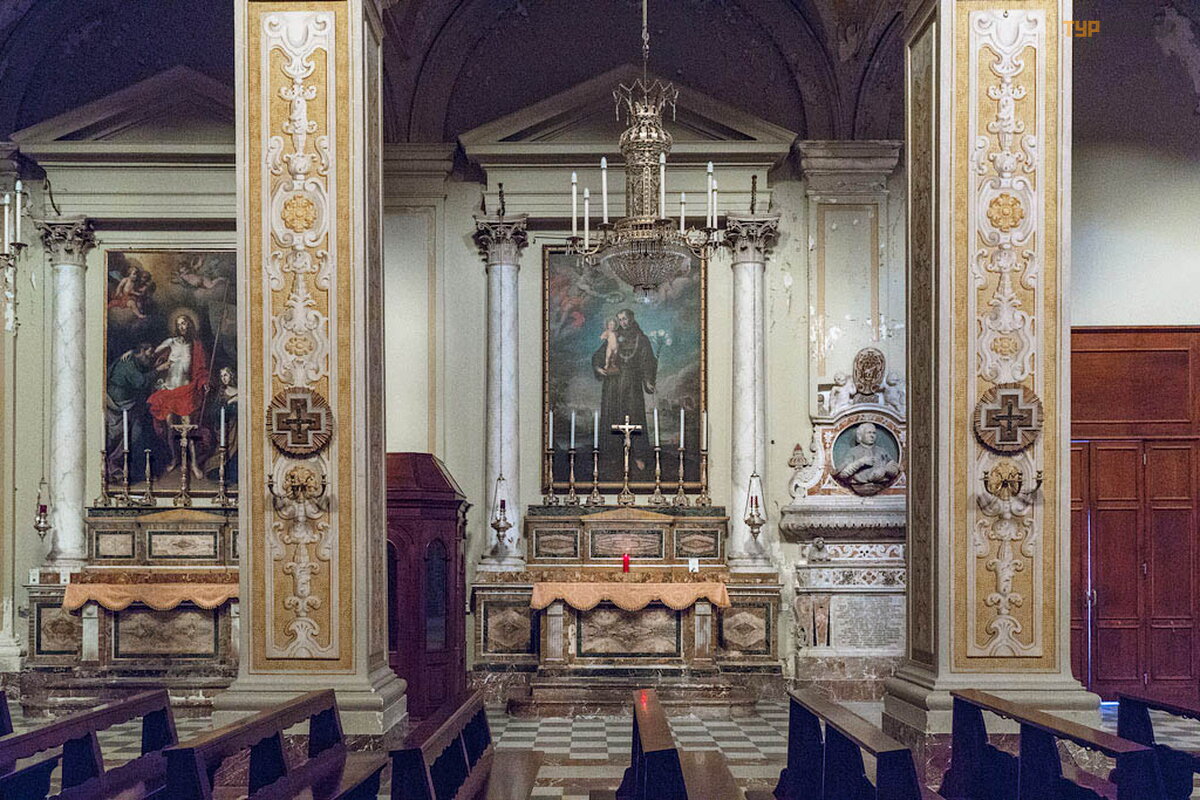 Ant sienų yra Pietro Vasta ir Antonio Filocamo freskos ir paveikslai: