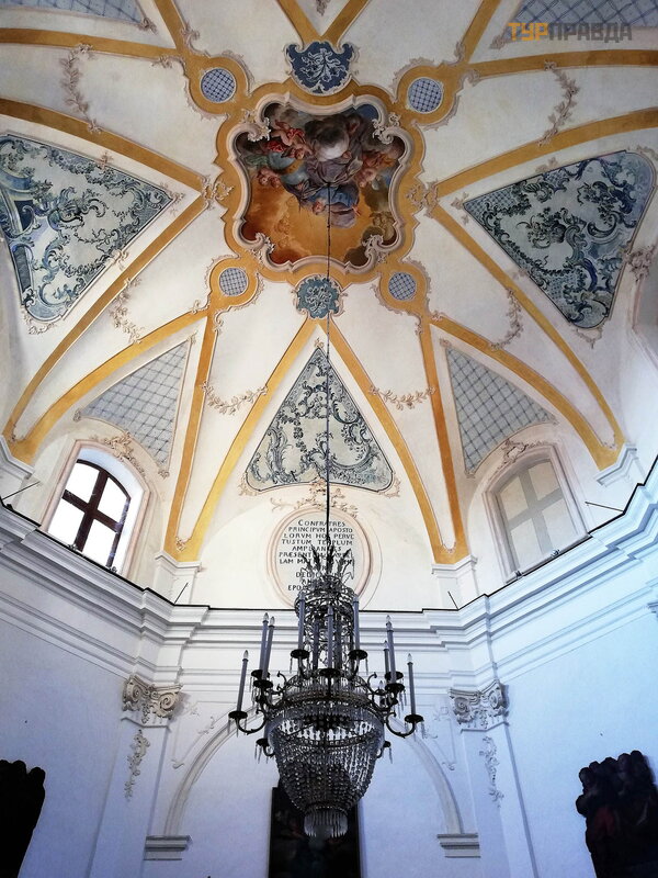 Viduje vienanavė bazilika buvo iš naujo papuoš ta po 1818 m. ž emė s drebė jimo.