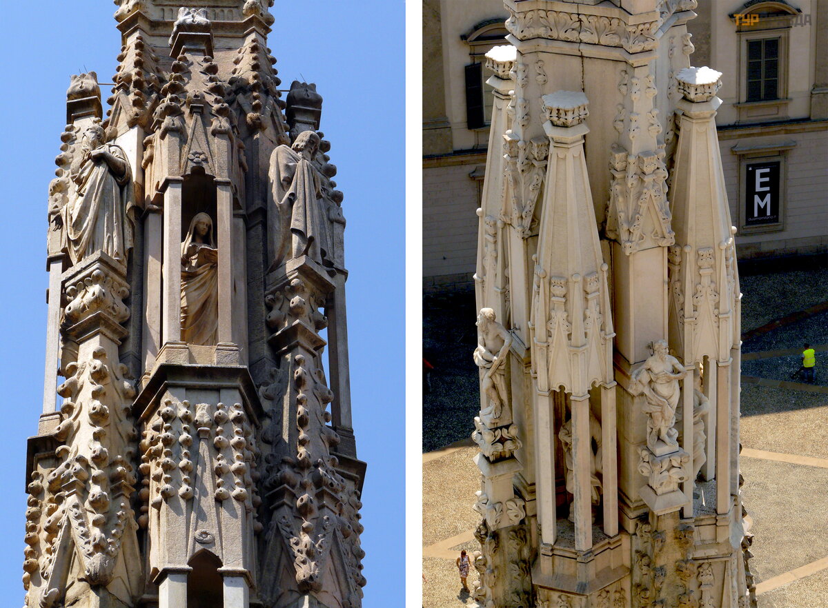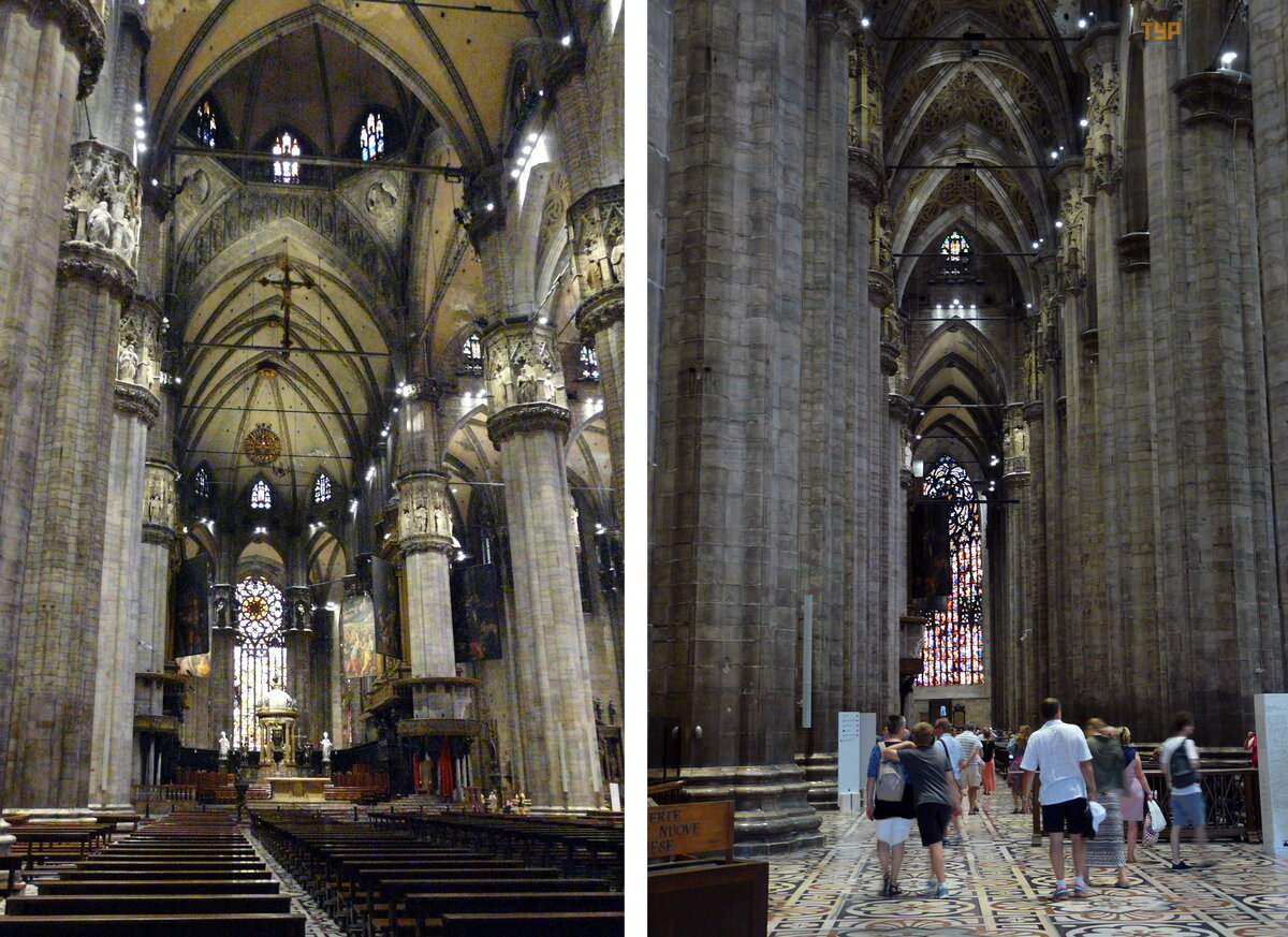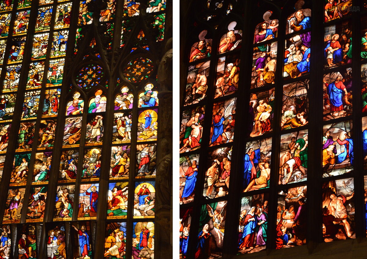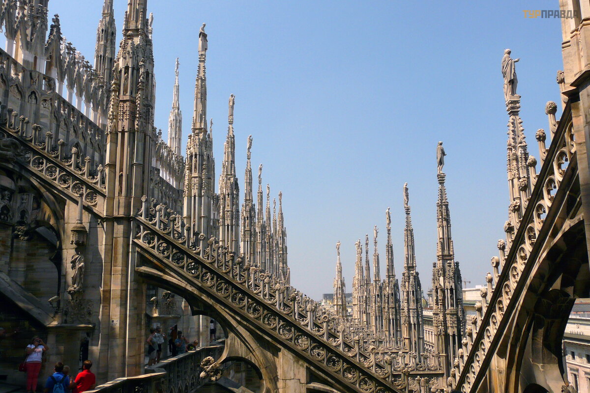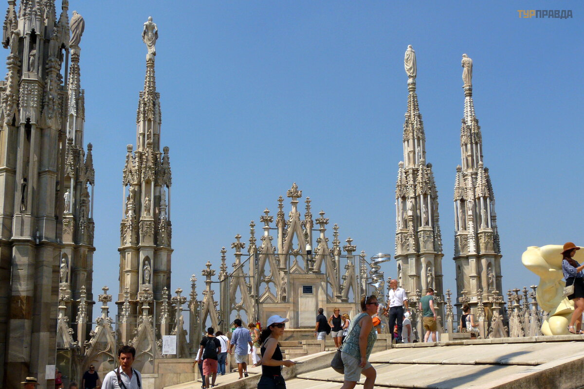 Ryto traukiniu iš Stresos, populiaraus kurortinio miestelio prie Maggiore ež ero, atvykome į Milano centrinę stotį , palikome daiktus bagaž o skyriuje ir iš kart nuvykome į pagrindinę katedrą bei Milano simbolį – Duomo. di Milanas. Atsiž velgiant į tai, kad mieste vyko paroda EXPO 2015, o turistų buvo neį tikė tinai daug, nusprendė me pradė ti nuo labiausiai lankomo miesto objekto. Abiejose katedros pusė se stovė jo kelios eilė s bilietų kasų , bet vis tiek į vidų bandanč ių patekti ž monių srautai iš pirmo ž vilgsnio š okiravo. Trisdeš imt penkios minutė s eilė je prie bilietų kasos, o su bilietu rankoje tuoj pat einame į eilę prie stogo. Ač iū Dievui, č ia buvo daug maž iau norinč ių jų . Pakilkite į liftą , dar š iek tiek laiptelių...ir mes atsiduriame š imtų nuostabių š ventų jų statulų , į vairiausių chimerų ir gargoilių apsuptyje. Až ū rinė s marmurinė s galerijos ir arkos yra tarsi nė riniai, apvynioti aplink katedrą .