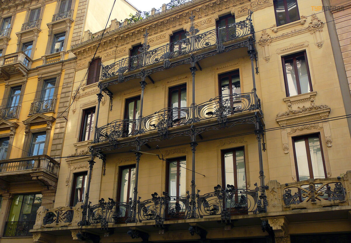Выходим с площади Мерканти на улицу Орефичи (Via Orefici) прямо к фасаду красивого здания в стиле ар-нуво.