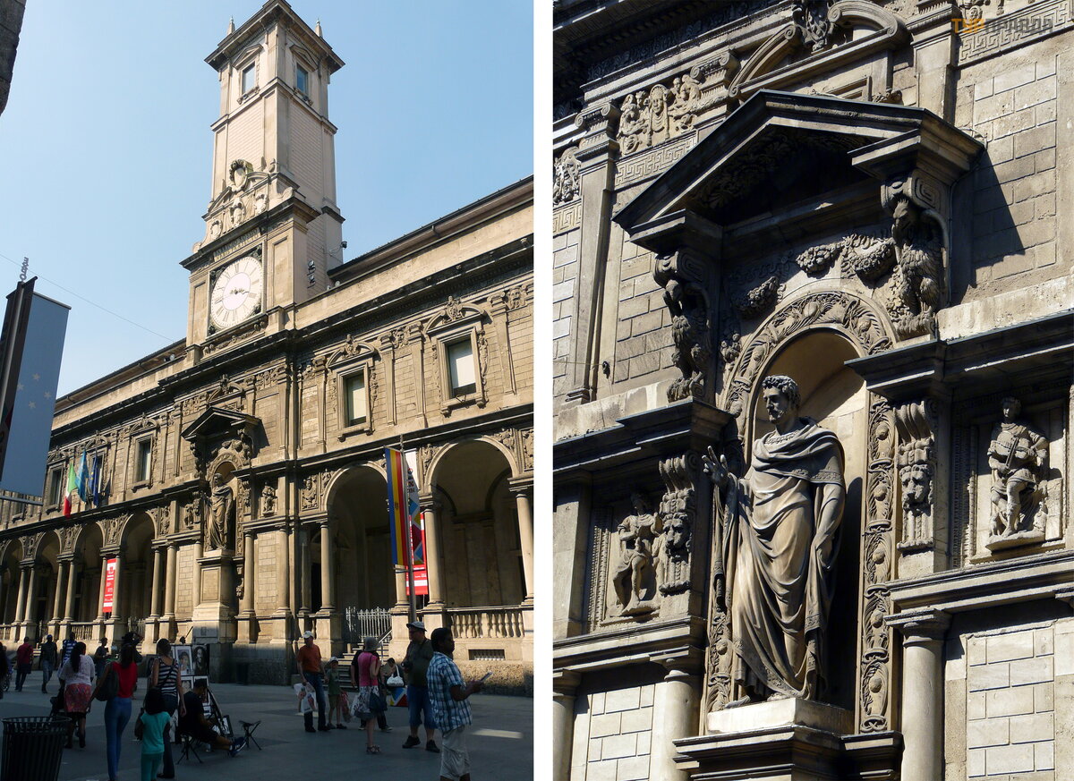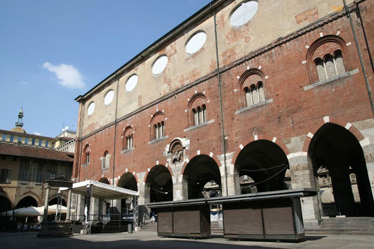 Aikš tė s puoš mena – barokiniai Scuole Palatine rū mai (Palazzo delle Scuole Palatine). Jo fasadą puoš ia daugybė skulptū rų , viena iš jų – Milane mokytojavę s š v. „Loggia degli Osii“ (Loggia degli Osii) ribojasi su rū mais su Milano kvartalų herbais ir garsiuoju parlera balkonu (parlera), iš kurio buvo skelbiami dekretai ir potvarkiai.