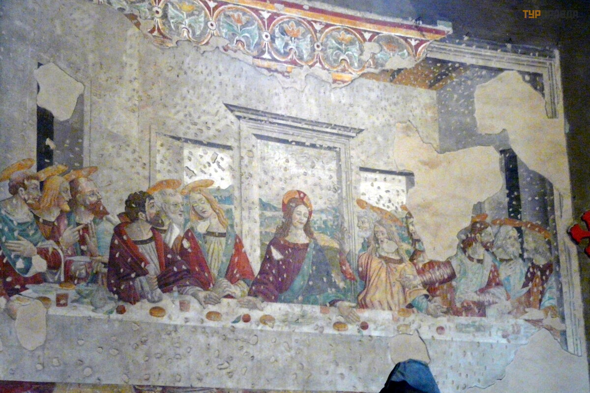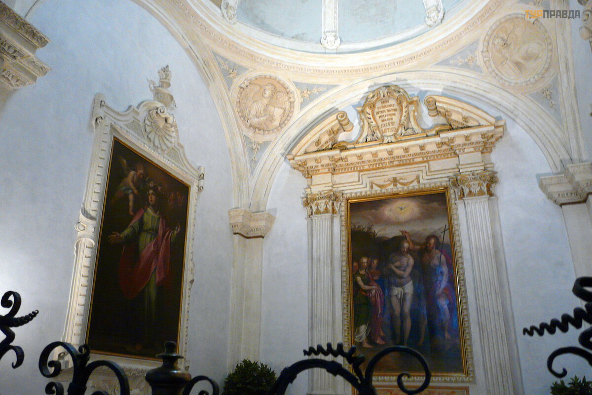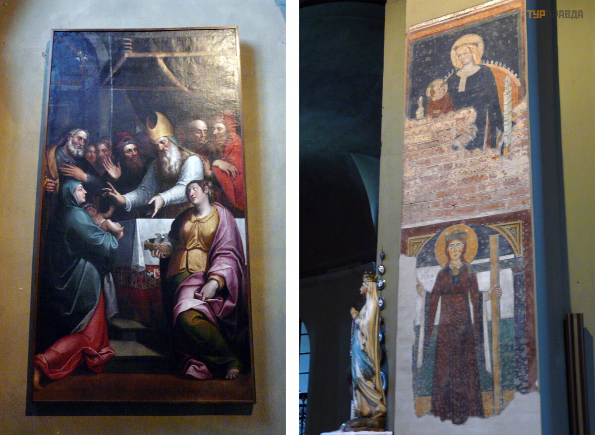 С фреской на главной алтаре (Мадонна с младенцем) связана легенда – по средневековому преданию после удара кинжалом, нанесенного одним неудачливым игроком, из фрески вдруг потекла настоящая кровь. Говорят, это чудо задокументировано в архивах собора, а оружие до сих пор хранится в специальном сейфе хранилища.