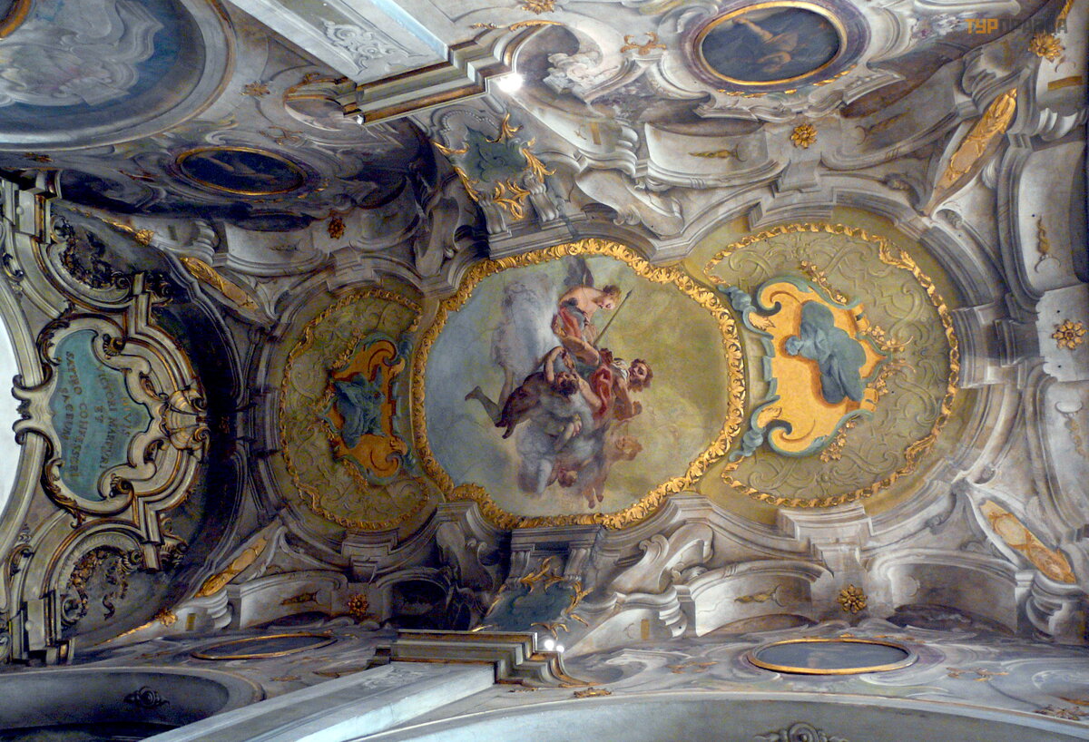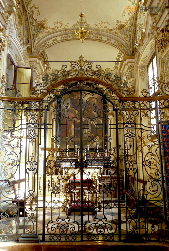 Į ė ję pro centrinius bazilikos vartus, atsidū rė me nedideliame kiemelyje – atriume. Paprastas klasikinis baž nyč ios fasadas nuteikė asketiš kam interjero dekoravimui. Tač iau tai, ką pamatė me, mus taip suž avė jo savo puoš numu, kad kelis kartus apė jome baž nyč ią , be galo tyrinė dami ir fotografuodami kiekvieną elementą .