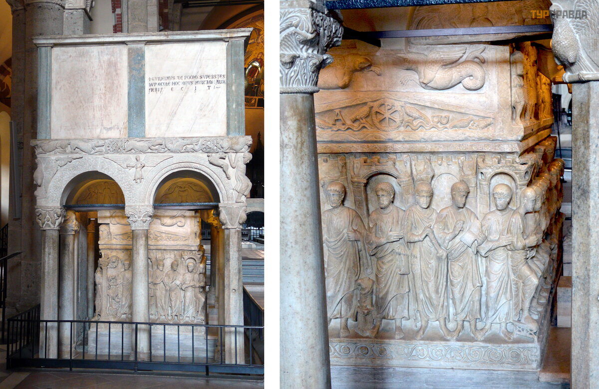 Роскошный, вырезанный из каменной глыбы, саркофаг римского полководца Стилихона (IV в).