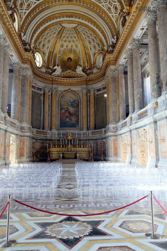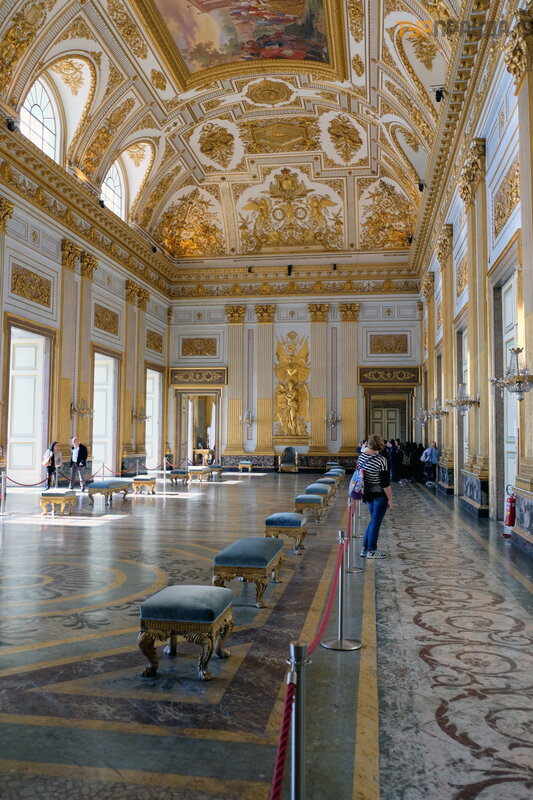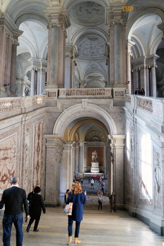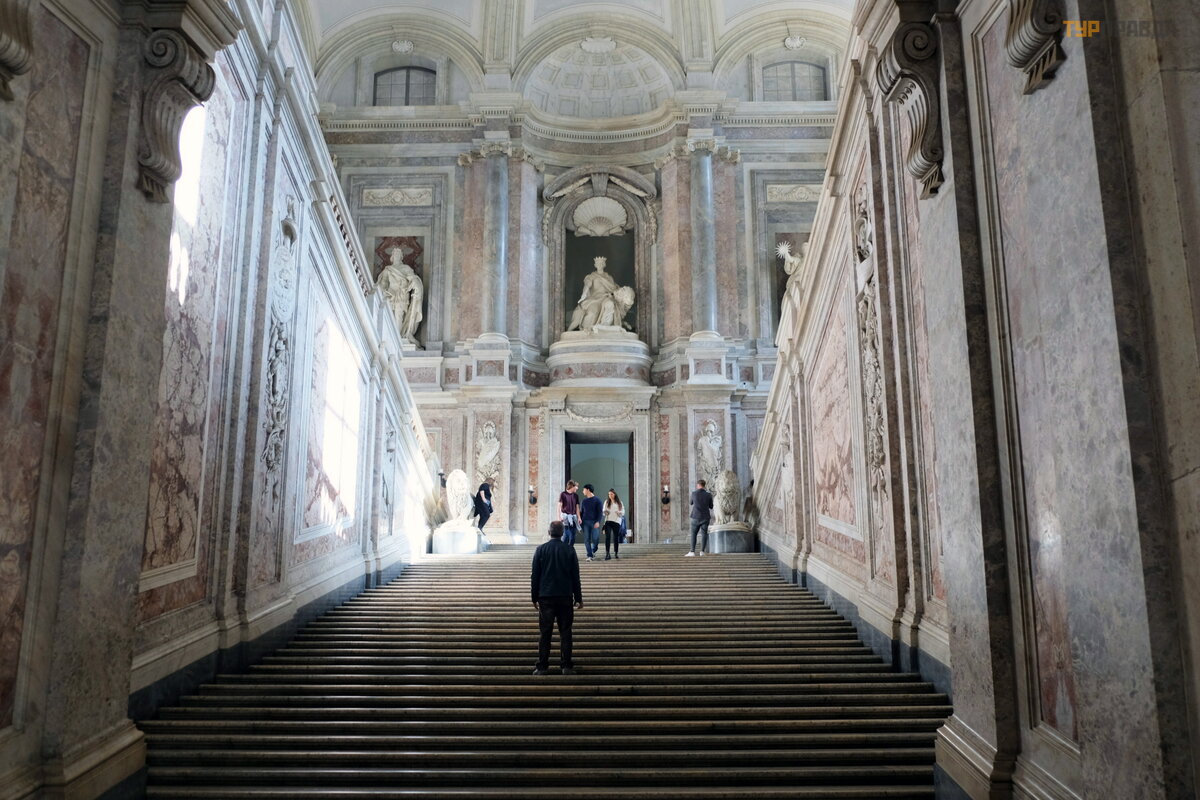 Mokesč ių kortelę reikė jo suaktyvinti platformoje esanč iame komposteryje. Iki Casertos traukiniu nuvaž iuosite 40 min. , pats miestas nedidelis, visi važ iuoja ten apž iū rė ti Karališ kų jų rū mų , kurie yra visai netoli stoties. Š ie rū mai yra Versalio ar Peterhofo analogas, t. y. Neapolio karaliaus kaimo rezidencija. Luigi Vanvitelli buvo pakviestas architektu 1753 m. , jo sū nus Luigi jau baigė statyti, nors rū mai buvo ne kartą perstatyti iki 1845 m.