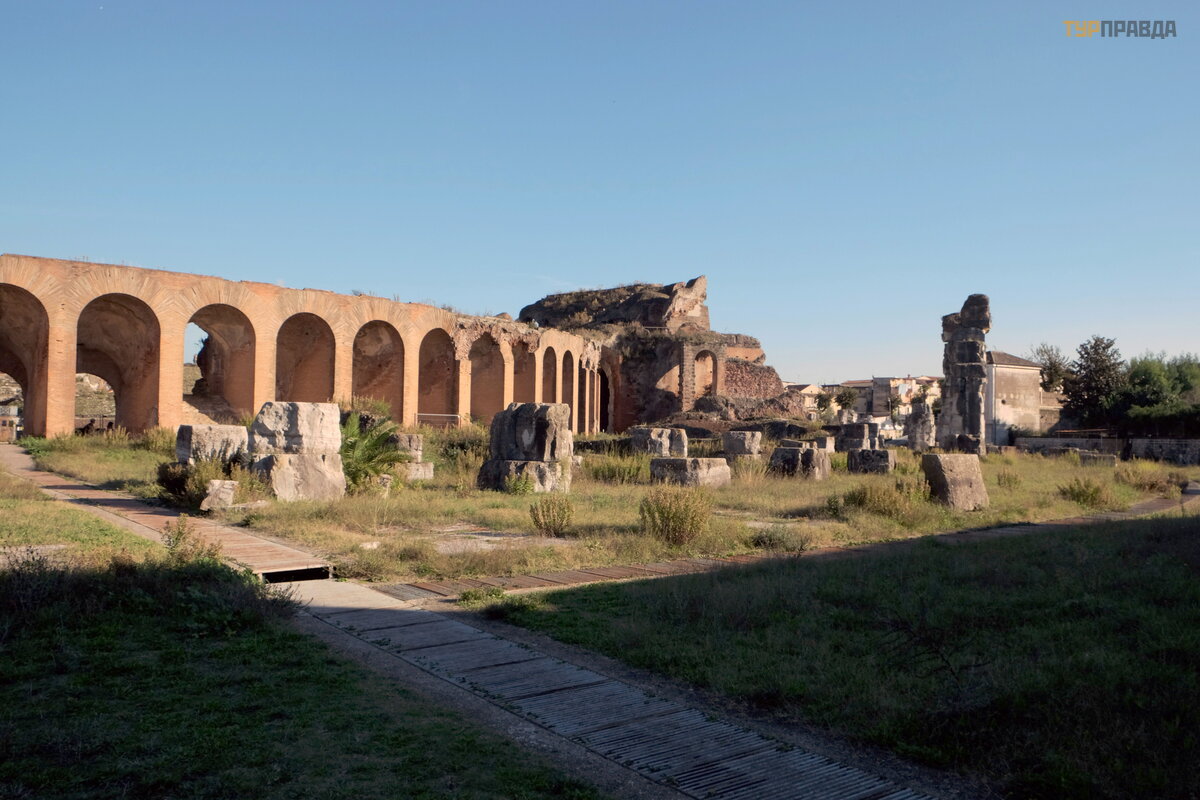 Kapuja yra vienas seniausių Italijos miestų , dabar tai maž as miestas, o anksč iau buvo treč ias miestas pasaulyje, nusileidž iantis tik Romai ir Kartaginai. Garsusis Apijaus kelias ką tik sujungė Romą ir Kapua. Visi Kapua paž į sta iš knygos ar filmo „Spartakas“, ten buvo gladiatorių mokykla, kurioje prasidė jo vergų sukilimas. Pagrindinė atrakcija – gladiatorių kovų amfiteatras, kuris 80 metų jaunesnis už Romos Koliziejų . Anksč iau jame tilpo 4.000 ž iū rovų , tač iau dabar iš jo liko tik ž emesnė s pakopos. Arenos lankymo kaina nuostabi – tik 2 eurai.