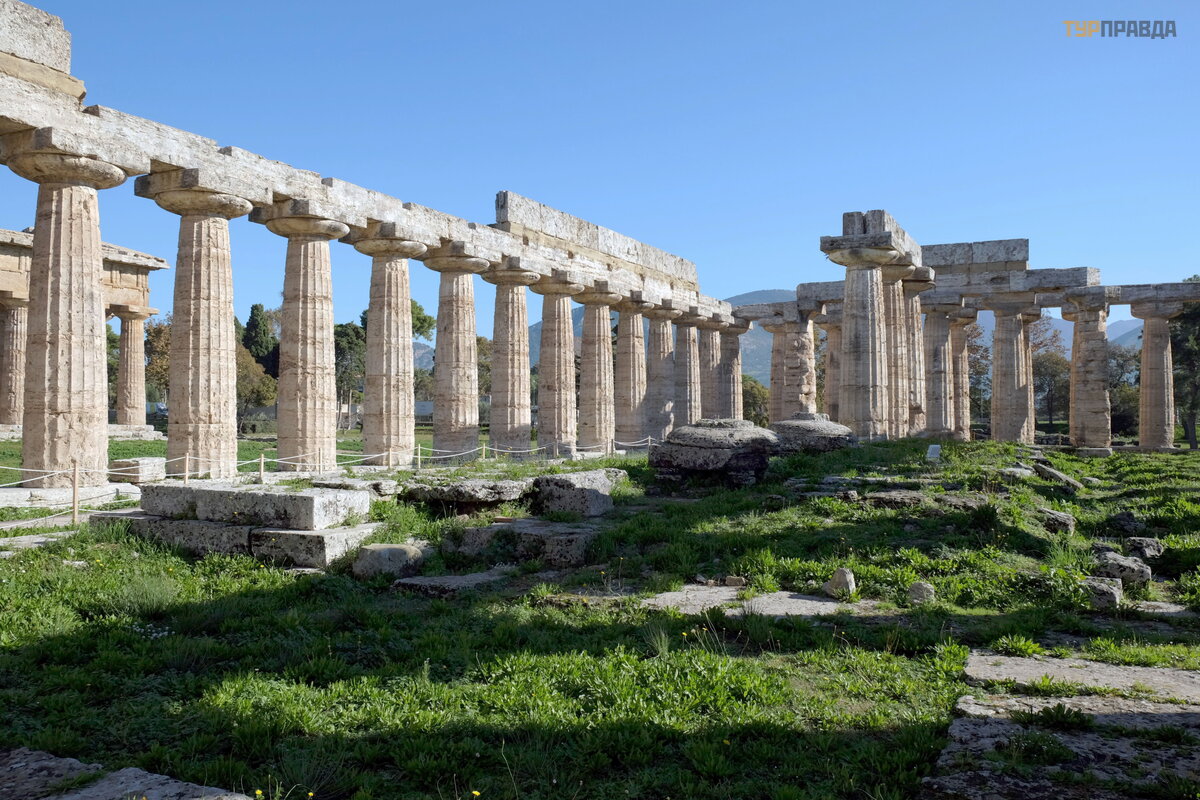 Paestumas buvo graikų kolonija, į kurta VII amž iuje prieš Kristų . Š iuo metu yra gerai iš silaikiusios trys š ventyklos, o bent jau lankydamasis Graikijoje nesu matę s tokios bū klė s š ventyklų (taip pat ir Partenone). Bilietai parduodami muziejaus kasoje, patariu pro ją neiti, nes. Č ia surinkta keramika ir visos iš likusios freskos iš Š ventyklų slė nio, stebė tinai gerai iš silaikiusios.