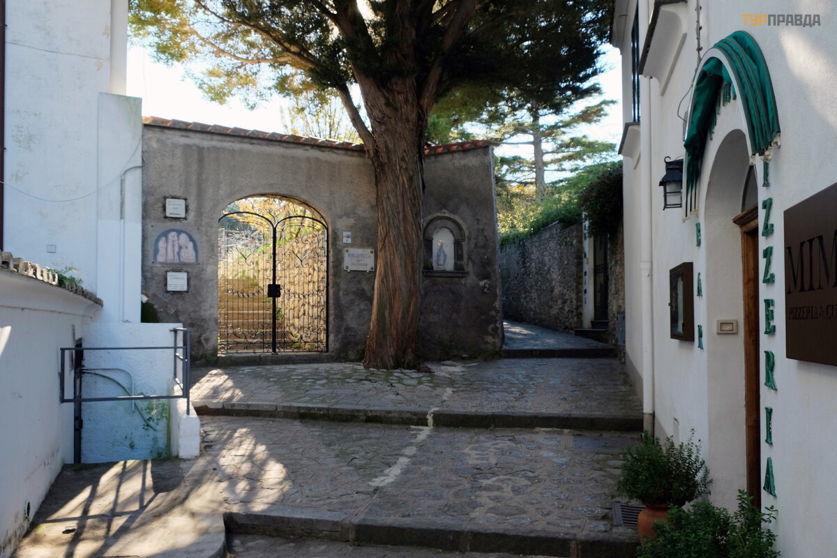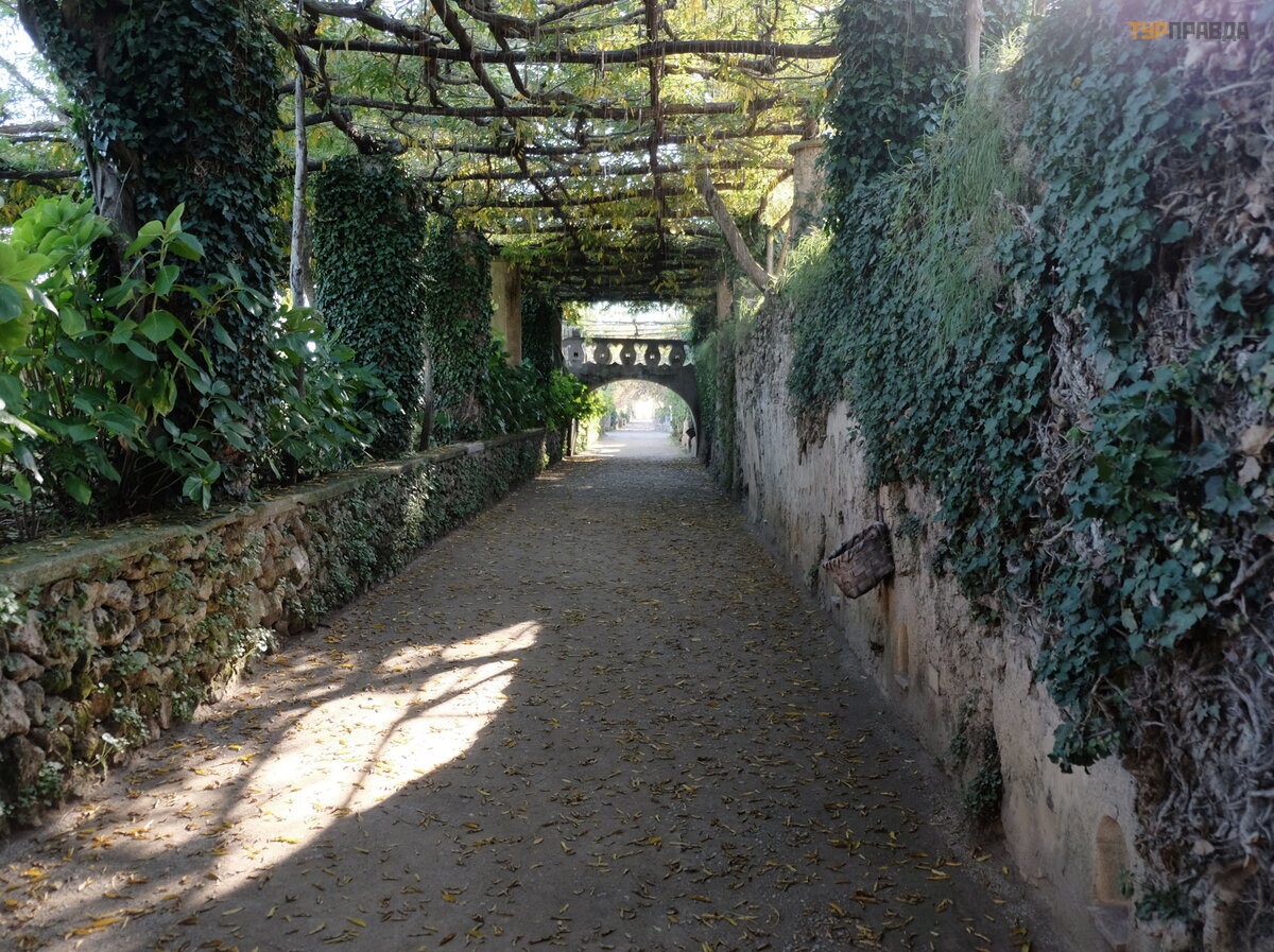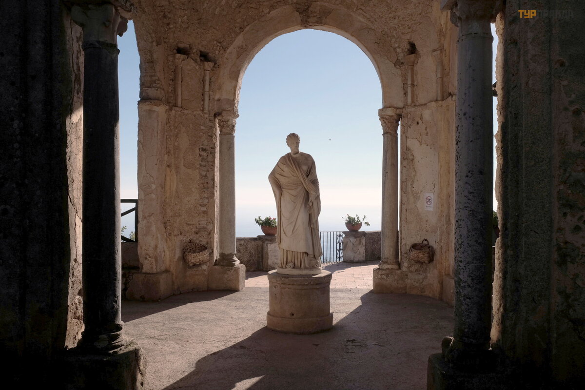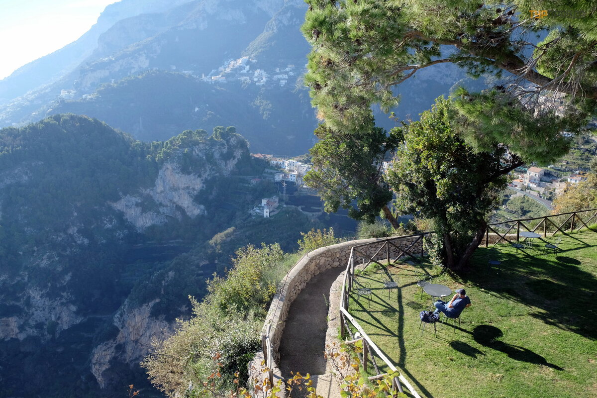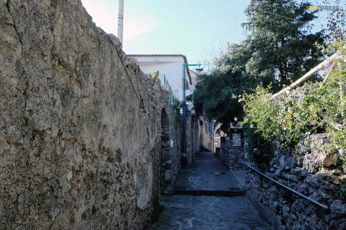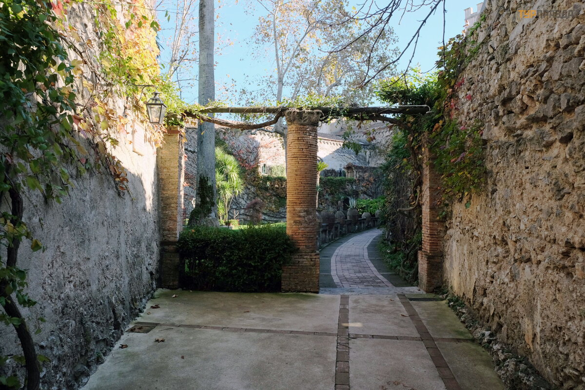 Turiu pasakyti, kad keliauti į Ravellą reikė tų , kai oras be debesų , antraip dingsta visa esmė , nes ž monė s č ia atvyksta dė l nuostabių vaizdų . Pernai buvo debesuota, nespė jome aplankyti suplanuotų vietų . Dabar saulė š vietė galingai. Iš dviejų ikoniš kų vietų pasirinkome Villa Cimbrone. Jis yra 10 minuč ių pė sč iomis nuo Ravello centro. Kelias vingiuoja siauromis gatvelė mis.