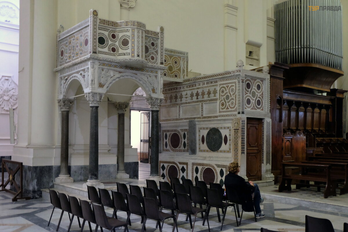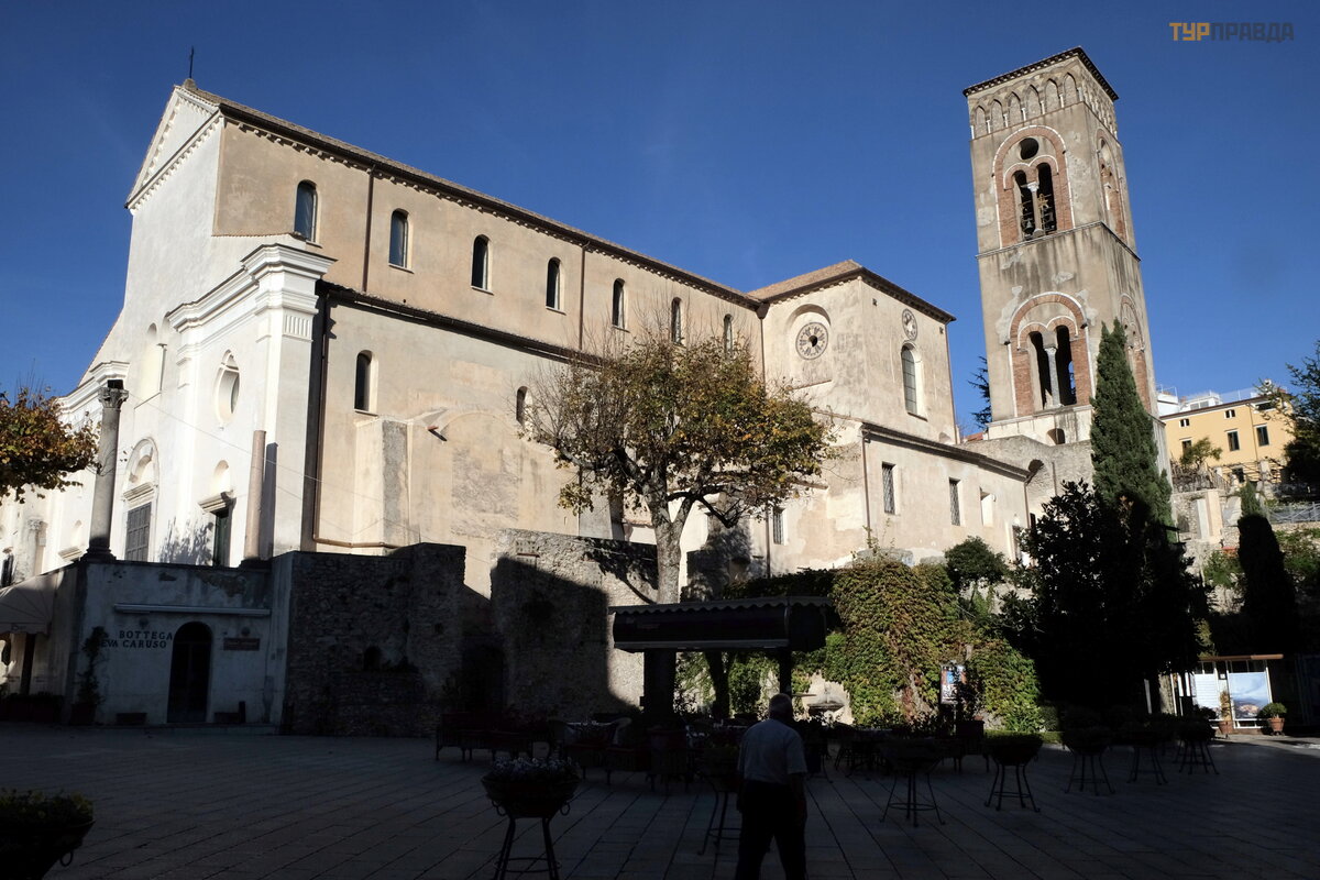 Paė ję pusantro kilometro, pasukome Via Duomo link San Matteo (Š v. Mato) katedros. Jis pradė tas statyti 1080 m. , o galiausiai baigtas 1085 m. Katedra buvo atidaryta po to, kai 1084 m. paš ventino popiež ius Grigalius VII, kurio kapas taip pat yra katedros viduje kriptoje (popiež ius kovojo dė l valdž ios su karaliais ir buvo iš tremtas iš Romos į Salerną , kur ir mirė ). 1688 m. katedra buvo smarkiai apgadinta per ž emė s drebė jimą ir architekto Sanfelice restauruota baroko stiliumi. Katedrai nepasisekė ir Antrojo pasaulinio karo metais, kai są jungininkai smarkiai bombardavo Italijos miestus, nepaisydami istorinių pastatų . dė l to daug katedrų buvo smarkiai apgadintos (Mesinoje, Paduvoje, Florencijoje), 1943 m. buvo smarkiai apgadinta ir Salerno katedra.