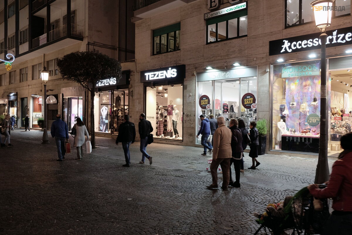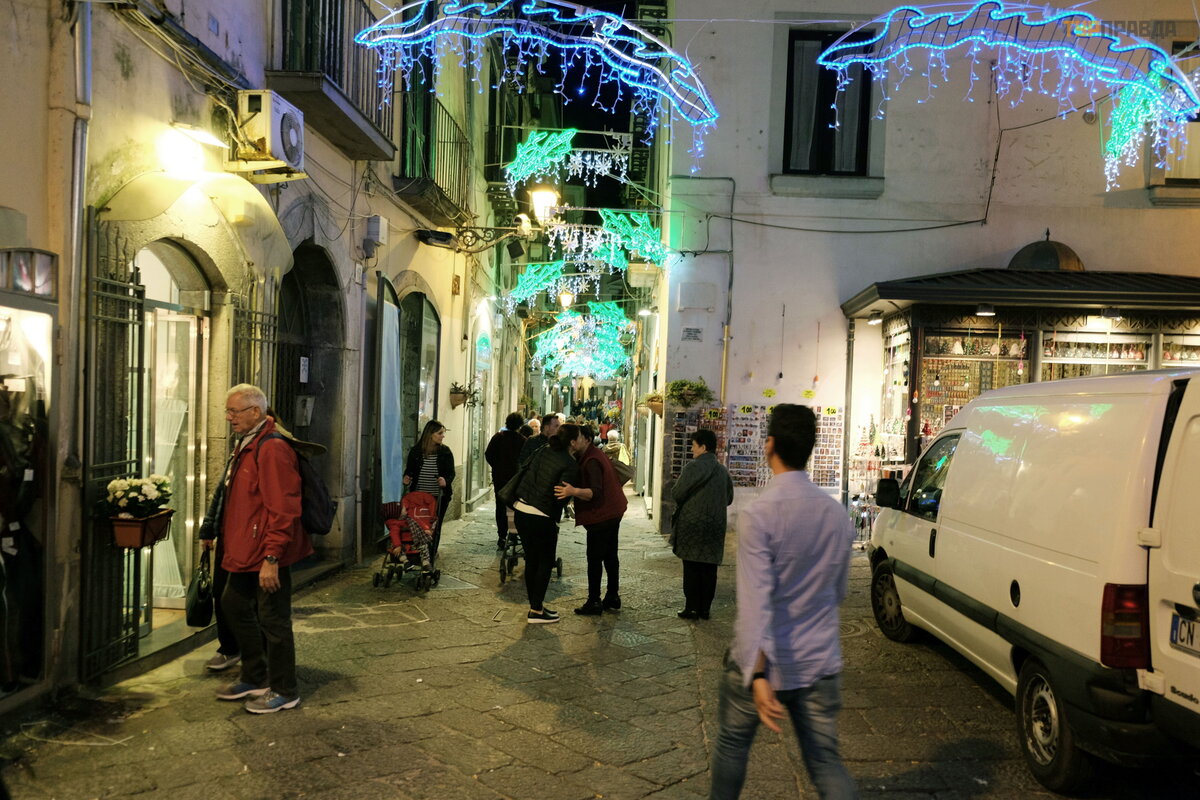 Jau buvo vakaras Salerne ir mes pakilome į katedrą Via Victor Emmanuel, kuris virsta reklamine Via Mercanti.