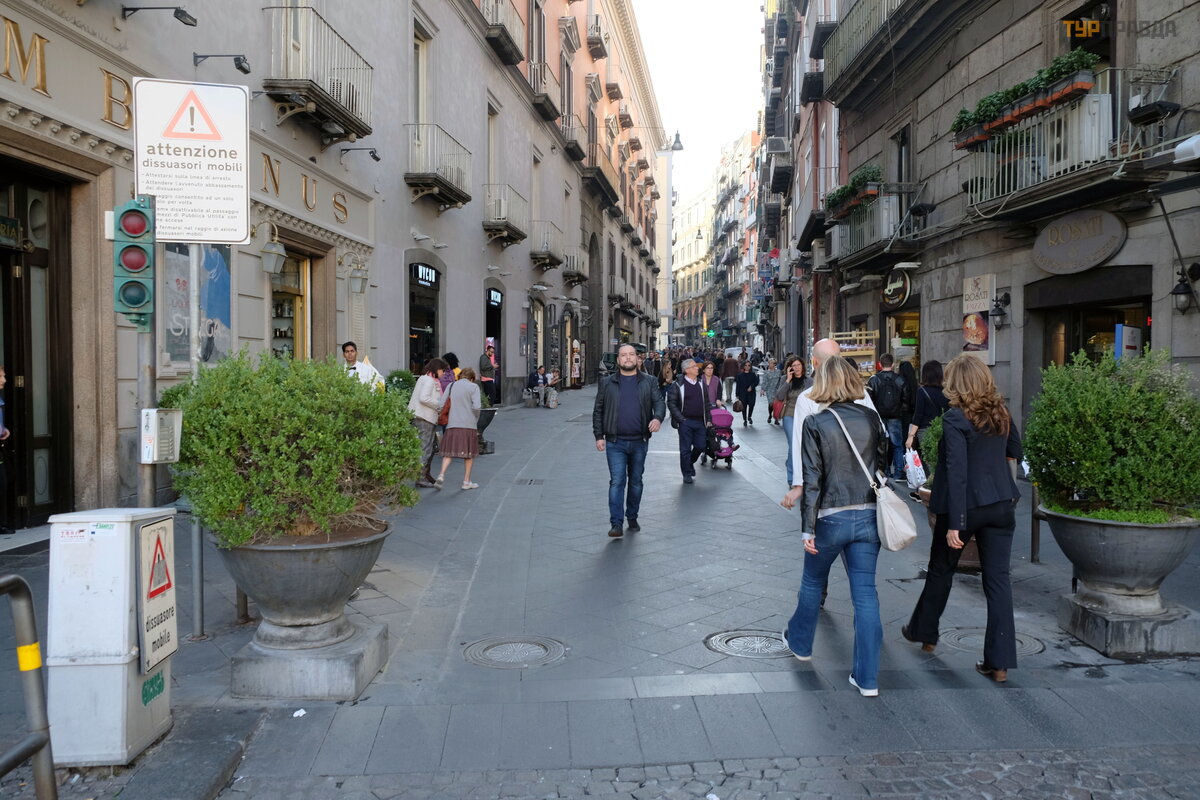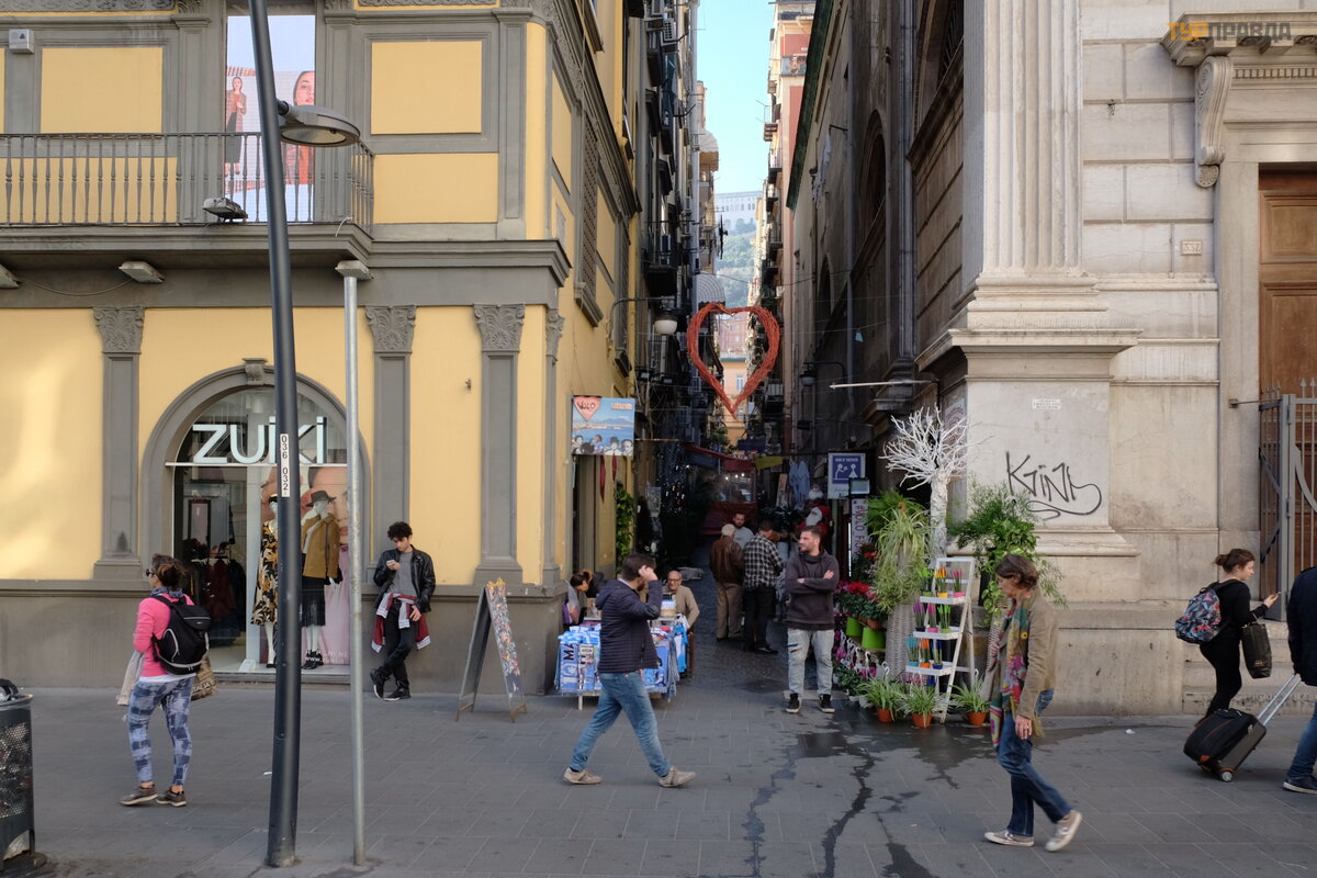 Nuo Dantė s, judriausios Neapolio pė sč ių jų gatvė s, prasideda Via Toledo (pavadinta vicekaraliaus Pedro di Toledo vardu) su daugybe parduotuvių ir prekybos vietų