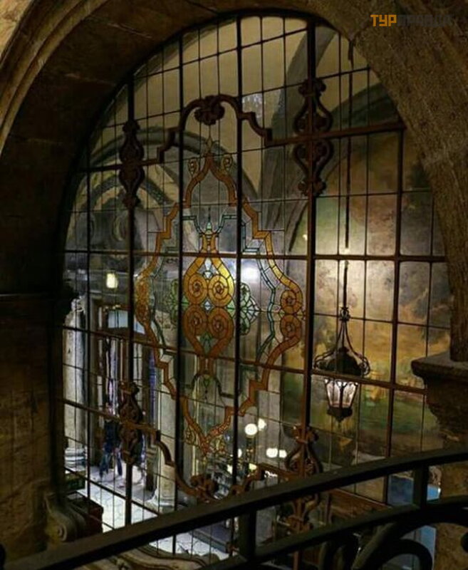 Galite į eiti į banko pastatą ir pasigrož ė ti vidaus apdaila,