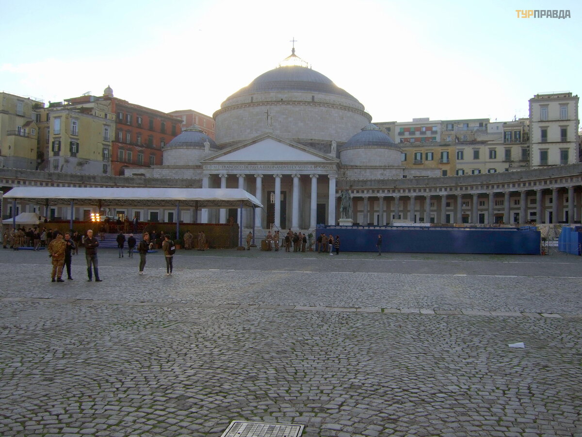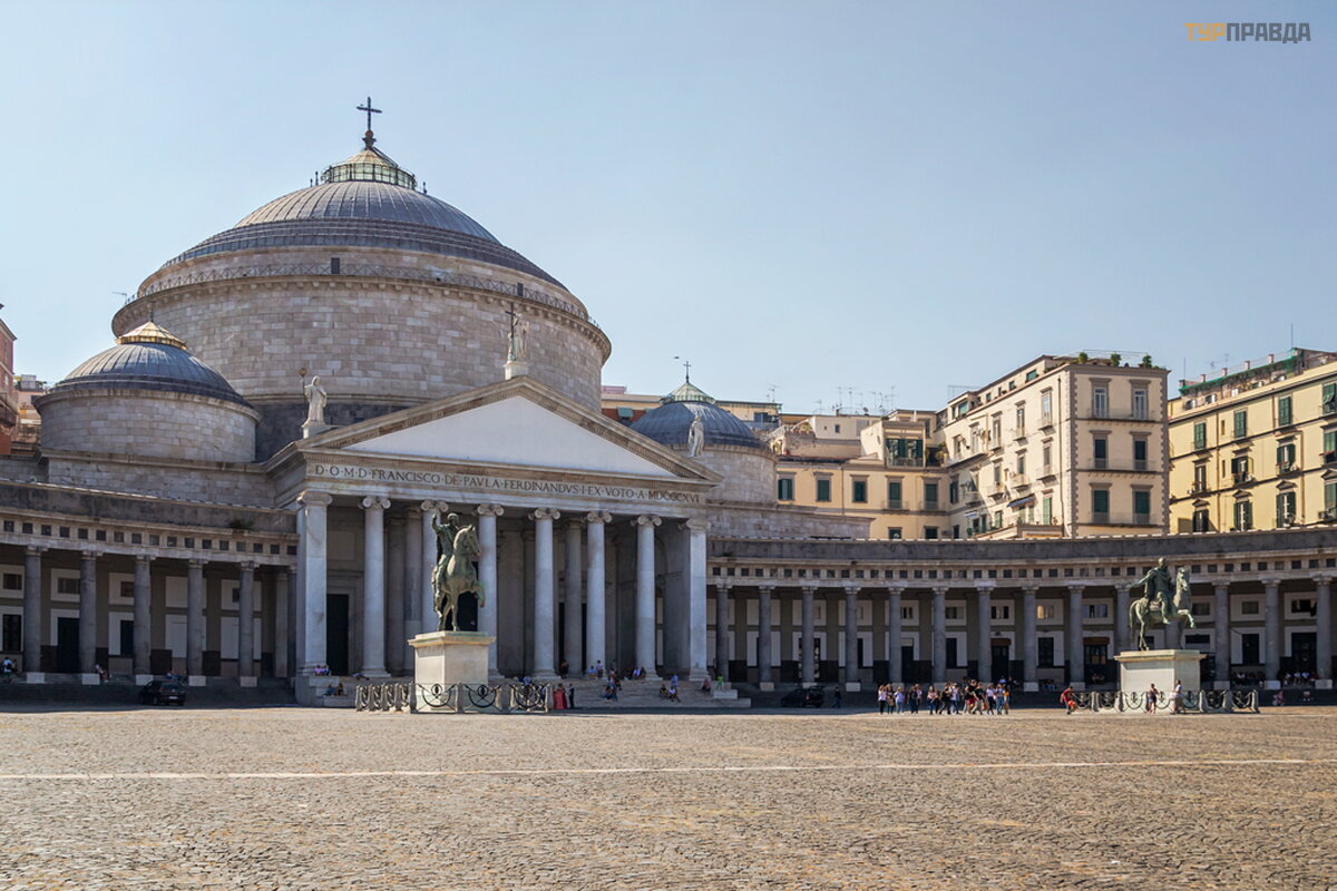 Iš gė rę kavos nuė jome į Plebeshito (Referendumo) aikš tę , kur daž niausiai veda organizuotos turistų grupė s. Dabartinį pavadinimą aikš tė gavo po Italijos suvienijimo, nes 1860 m. surengtas plebiscitas suteikė oficialų pagrindą buvusios Abiejų Sicilijos karalystė s ž emė ms į traukti į naują ją š alį . Aikš tė s idė ja priklausė Neapolio karaliui Joachimui Muratas, kuris nusprendė XIX amž iaus pradž ioje. sukurti tikrai Napoleono mastu Murato forumą . Tač iau aikš tę už baigė Š v. Franč esko di Paolos bazilika (architektas P. Bianchini; 1817–1846 m. ), kurią Burbonietis Ferdinandas I pastatė atsidė kodamas dangui už karalystė s iš laisvinimą iš uzurpatoriaus, o Muratas rudenį buvo suš audytas. 1815 m. , kai jis palaikė Napoleoną grį ž us iš Elbos. Dabar tai pė sč ių jų zona ir vieta į vairiems renginiams. Aikš tė je vyko kaž kokio karinio parado repeticija.
