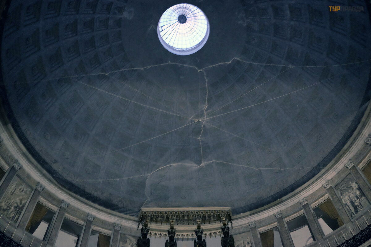 Pati š ventykla yra keistas Panteono ir Š v. Petro bazilikos hibridas su Berninio kolonada. Tada nuė jome į baž nyč ią , jos viduje taip pat kartojasi Panteonas.