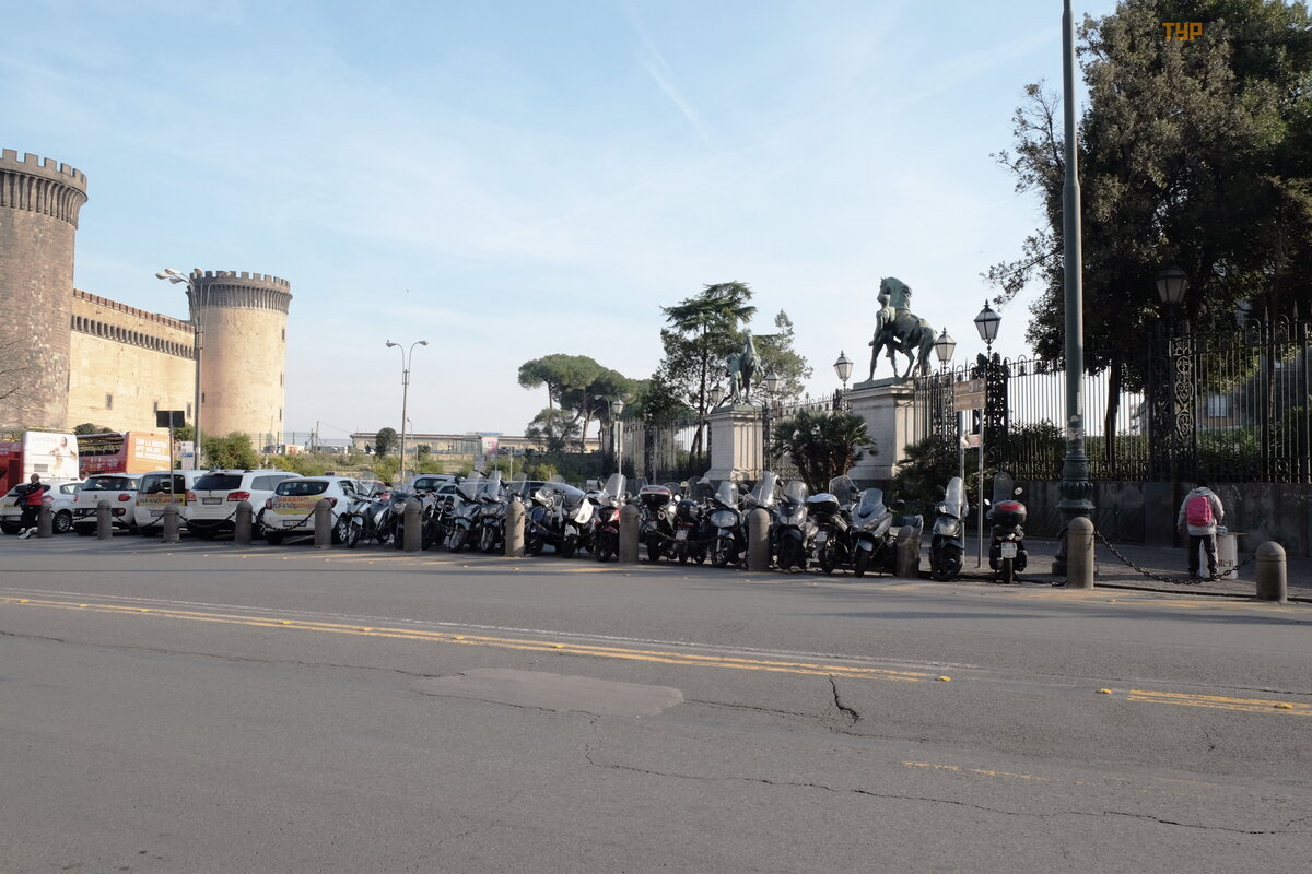 Nuė jome į gerą piceriją , paž į stamą iš praė jusių metų . Atsigaivinę pasivaikš č iojome po Anž evinų pilį „Castel Nuovo“ (1279-1282 m. pastatė Karolis I Anž u kaip savo dvaro rezidenciją ).