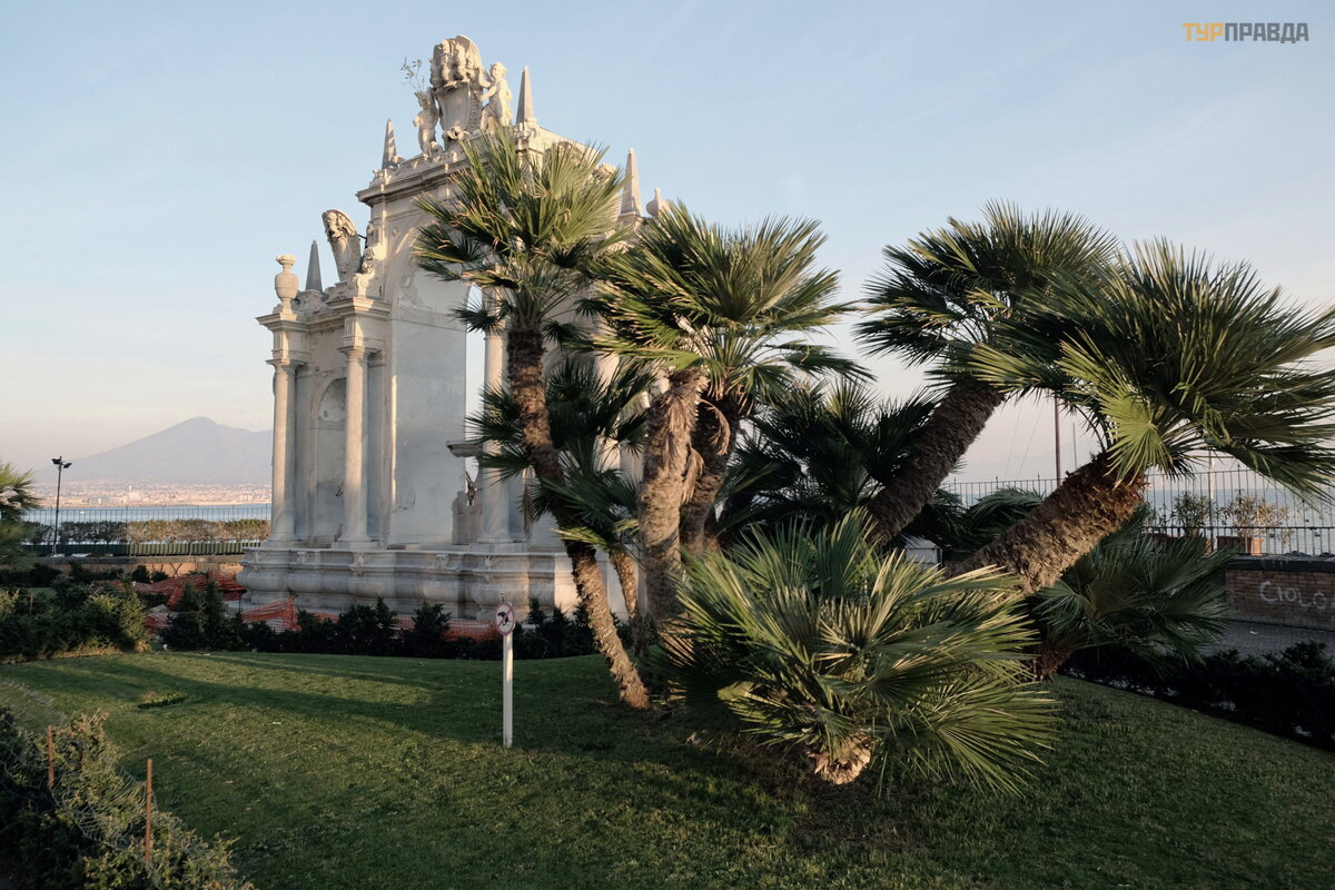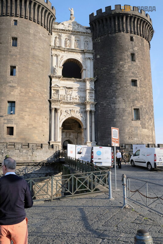 Didž iulė citadelė su cilindriniais bokš tais turi pagrindinį į ė jimą – Triumfo arką , reč iausią Renesanso meno Neapolyje pavyzdį .