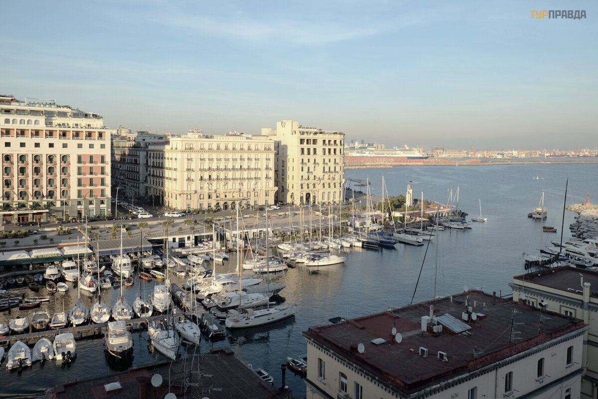 Apvaž iavę pilį , iš einame į jū rų stotį , kur š vartuojasi kruiziniai laineriai ir iš plaukia keltai į Kaprį ir Iskiją . Jū rų stotis buvo pastatyta Neapolyje 1936 m. – prieš pat Antrą jį pasaulinį karą architekto Cesare Bazzani. Tai dviejų visiš kai simetriš kų gnybtų , sujungtų trimis skersiniais praė jimais, kompleksas. Š i konstrukcija pasirodė labai patogi – netrukus po Neapolio jū rų stoties pastatymo ji virto vienu didž iausių uostų Europoje ir tokia iš lieka iki š iol.