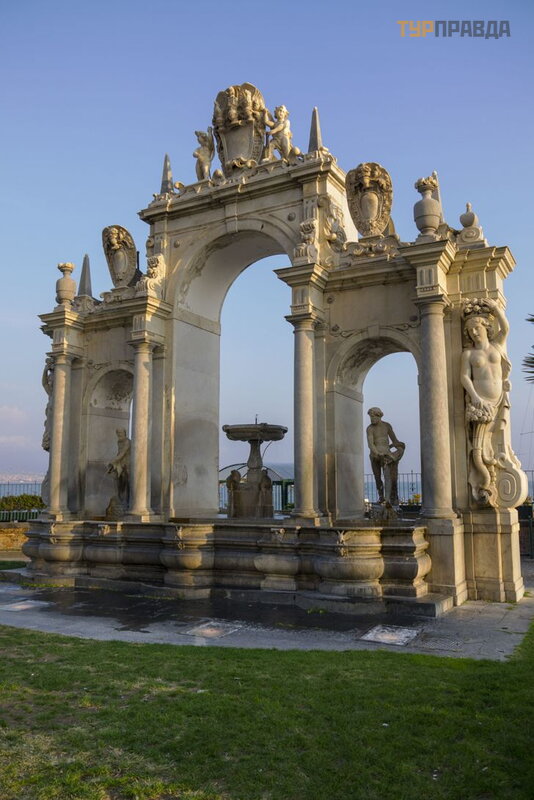 Prie pilies yra vienas garsiausių Neapolio fontanų „Milž inas“ (fontana del Gigante), skulptoriai Michelangelo Naccherino ir Pietro Bernini (didž iojo Lorenzo tė vas ir rizikingo fontano „Barcaccia“ autorius –) Laivas“ prie Ispanijos laiptų ). Fontanas buvo sukurtas XVII amž iuje karališ kiesiems rū mams, kur jis stovė jo š alia milž ino figū ros, iš č ia ir kilo pavadinimas. Fontanas kelis kartus buvo perkeltas iš vienos vietos į kitą , dabar č ia stovi nuo 1906 m.