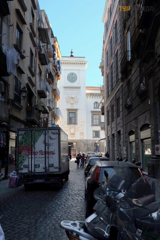 Judė jimas aukš tyn Via Tribunali, pagrindine gatve istoriniame Neapolio centre. Via Tribunale baigiasi Capuano pilyje.