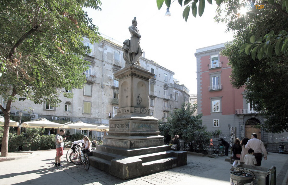 maž a Piazza San Gaetano, kur yra obeliskas Š ventajam Gaetanui (Cayetan), Teotinų ordino į kū rė jui, kaip į ž adas iš gelbė ti Neapolį nuo maro. 1656 m. Paminklą suprojektavo ir pagamino italų skulptoriai Cosimo Fanzago ir Andrea Falcone.