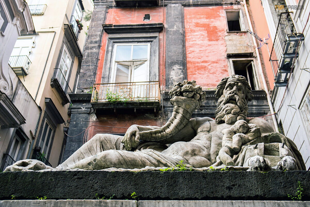 Už rū mų yra skulptū ra, esanti maž oje Nilo aikš tė je. Marmurinė skulptū ra yra garsiosios Egipto upė s dievo atvaizdas. Dievo Nilo statula. Jis buvo pastatytas tais laikais, kai Neapolis buvo Graikijos miestas. Savo dabartinę vietą ji rado XVIII a.
