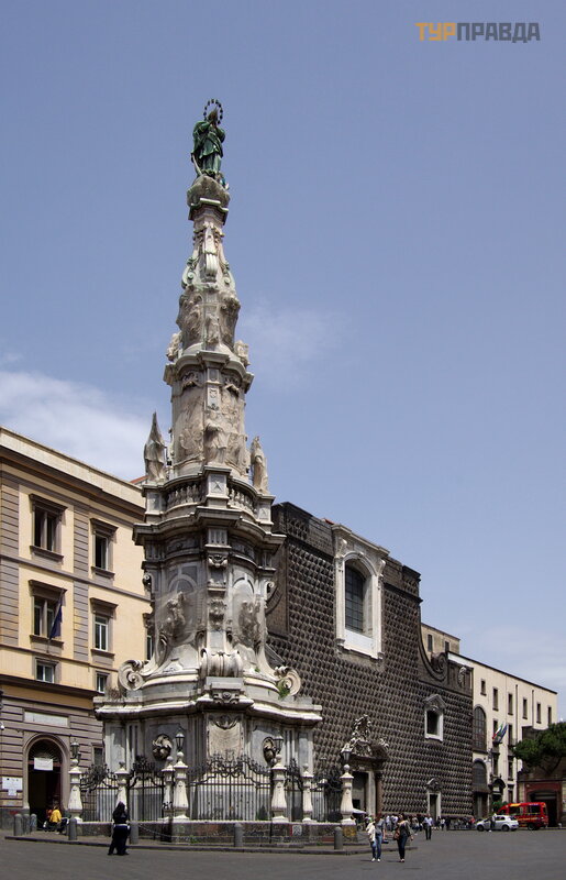 Iš jo atsiveria vaizdas į aikš tę , kurioje yra seniausias Neapolio obeliskas Š v. Obelisko projekto autorius – skulptorius Cosimo Fandzago. Iš kilmingas paminklo atidarymas į vyko 1660 m.