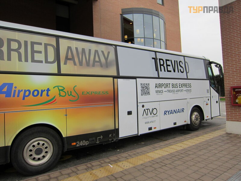 Skirtingai nei Ukrainoje, autobusai Trevize prisitaiko prie lė ktuvų skrydž ių , todė l patekti į Veneciją labai paprasta. Taigi prie iš važ iavimo buvo firmos BARZI autobusas, apie kurį aš než inojau, į moka į kasą autobuse buvo 7 eurai ž mogui. Jis mus nuvež ė į Venecijos aikš tę Roma.