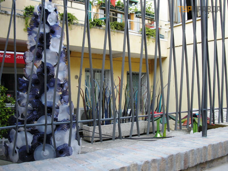 Pavaikš č iojome po Muranodaugybę vietų , kur yra į domių skulptū rų ir kitų smulkmenų iš stiklo, net apž iū rė jome stiklo pū timo dirbtuves, už ką sdavome, nusiprausdavome atvykę į Venecija su trupuč iu Krymo konjako ir vakare nusprendė me pamatyti Kas yra Venecija .