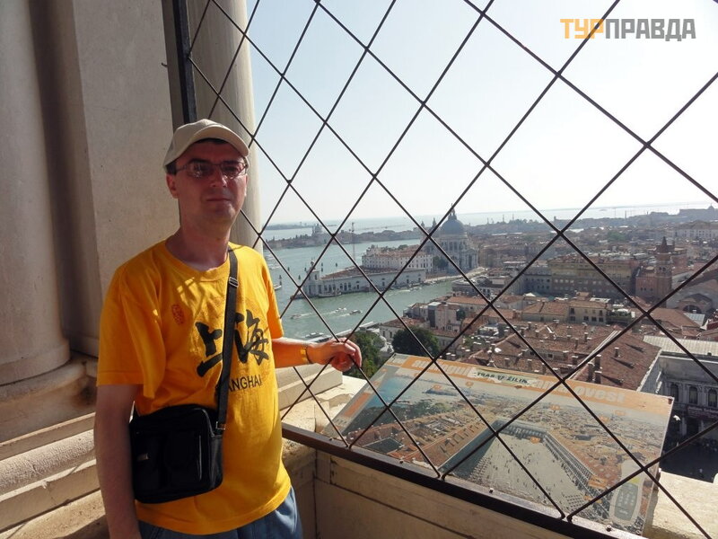 16:30 liftu pakilome į Kampanilę , iš kurios į visas keturias puses atsiveria nuostabus vaizdas į Veneciją .