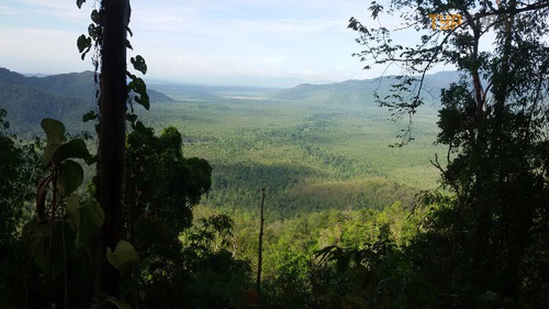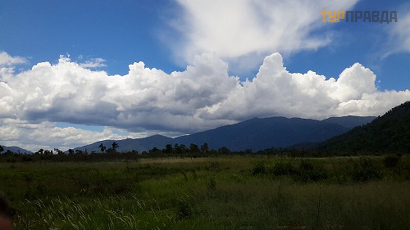 Taip jau susiklostė , kad tai vienintelė nuotrauka, kurioje matosi Phnom Oral smailė - tai ta maž utė į duba ant centrinio keteros : ) Likusį laiką debesys "sė dė jo" virš ū nė je.