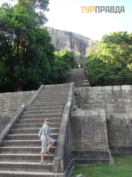 Dar vienas didž iulis ač iū kelionė s organizatoriams. Taip, mus iš kė lė iš lovų.6 val. Bet tik tam, kad Sigirijoje bū tume PIRMI. Kai mes ten atvykome, parkas buvo visiš kai tuš č ias. Ir mes pirmieji nuė jome prie š ios uolos. Freskos buvo pirmosios, kurios atrodė be minios ir blusų . Mes pirmieji pasiekė me virš ū nę . Nusifotografavome. Viską apž iū rė jo ir nuodugniai. Kas ten vyko po to, kai pradė jo važ iuoti kelionių agentū rų autobusai iš visos Lankos, o visą pakilimą buvo eilė - net nenoriu galvoti.