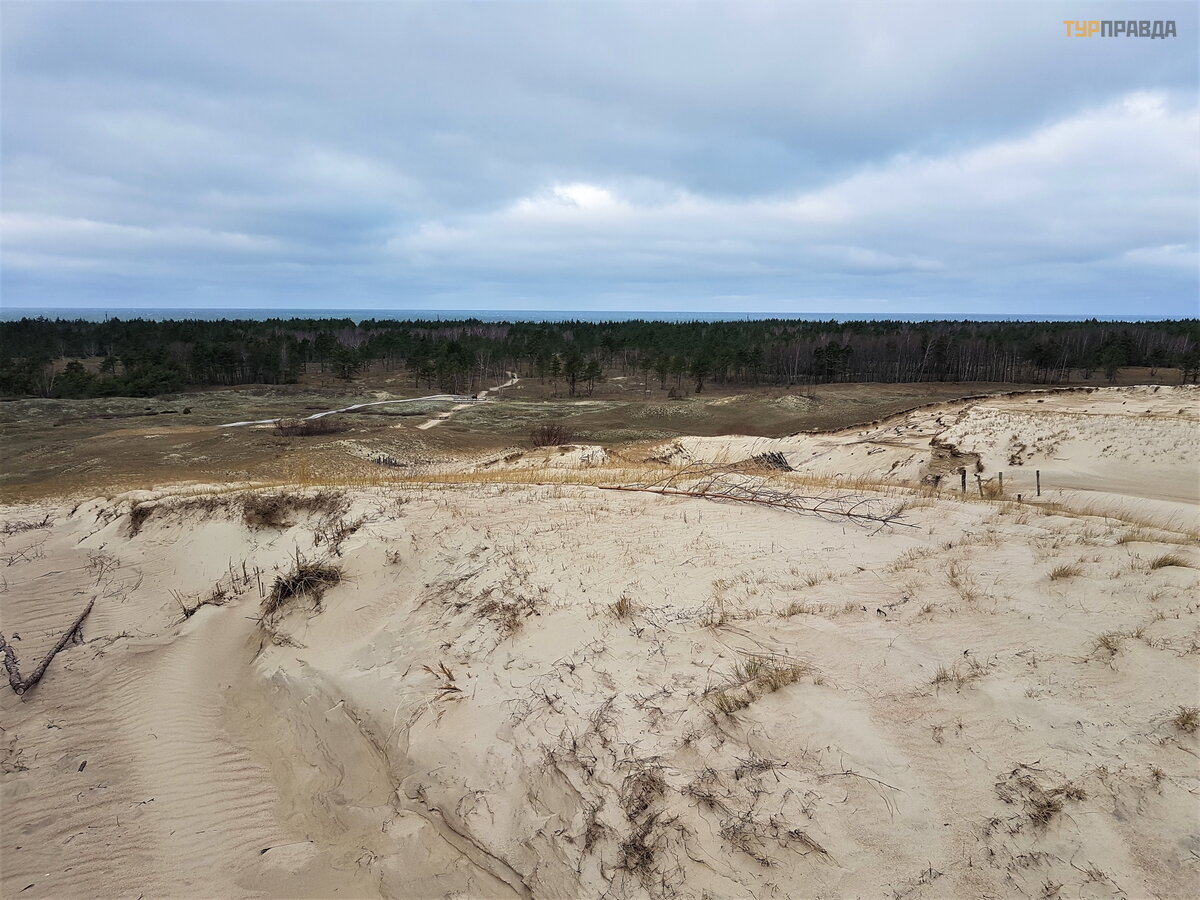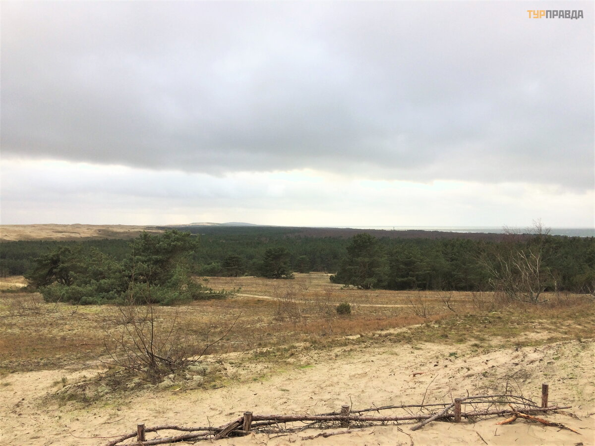 Deš inė je - Baltijos jū ra, tiesiai - Rusija. Esant geram orui gerai matosi pasienio posto bokš tas
