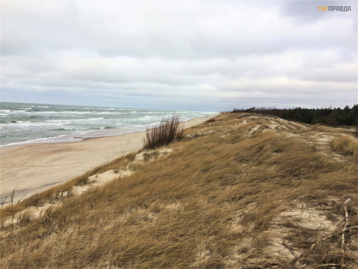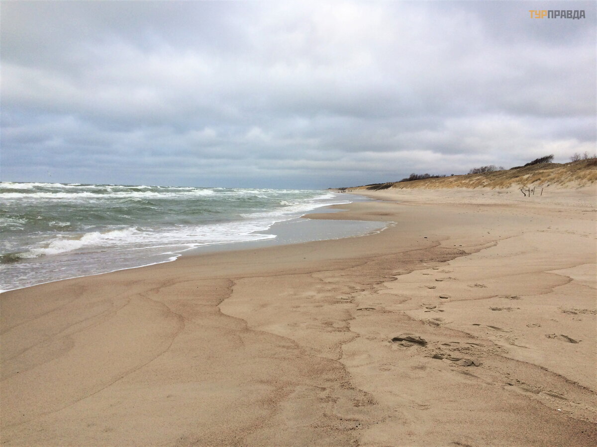Važ iuodami neriją girdė jome nuolatinį ū ž esį . Kas tai? Gal tai stulbinantis vė jas, toks sumiš ę s puš ų lajose, skverbiasi tarp kamienų ? Ir tik priartė jus prie paplū dimio paaiš kė jo, kad Baltija kelia tokį triukš mą . Nuotrauka, ž inoma, negali perteikti visos ž iemos jū ros stiprybė s ir galios, neį tikė tino pilkai ž alių bangų grož io. Per audrą , ž inoma, negalima atsipalaiduoti. Bet asmeniš kai mane toks gamtos š ė lsmas dž iugina š uniuku.