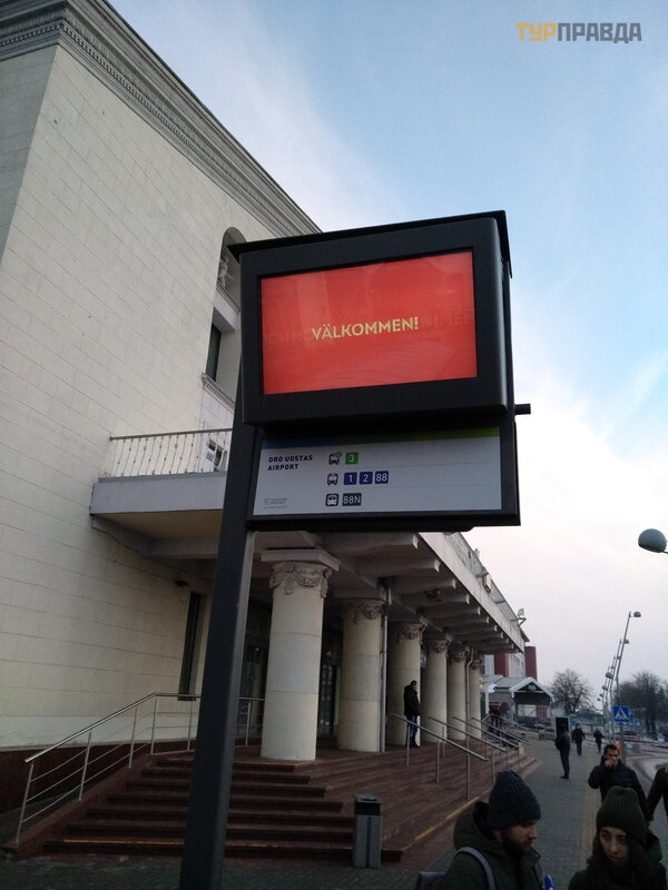Su ž mona buvo dar lengviau, pamatę s tas pač ias pavardes, sunkiai atsidusę s už dė jo antspaudą ir į leido mus į Latvijos teritoriją . Oro uostas Vilniuje (kaip ir tikė tasi) pasirodė maž ytis, buvo tik vienas iš važ iavimas, prie pat autobuso stotelė . Oro uoste yra lentelė su autobusų atvykimo laiku, prisijungiau internetą , telefone paieš kojau marš ruto, atsiž velgiant į vieš ą jį transportą , 88 autobusas važ iavo į mū sų vieš butį , kuris atvaž iuoja į mū sų stotelę (kaip valdyba informuoja) per 10 min. Puiku, stovim š iltai, laukiam, iš važ iuojam už aš tuonių minuč ių , autobusas atvaž iuoja beveik iš karto, į važ iuojame, perku du bilietus iš vairuotojo už.1 eurą , sė dam, einam. Tik penkios stotelė s, laiku už truko apie 20 minuč ių , iš važ iuojame, o naudodamiesi navigatoriumi judame į savo vieš butį , visiš kai nebuvo ko eiti, reikė jo susirasti hostelį , bet. . .