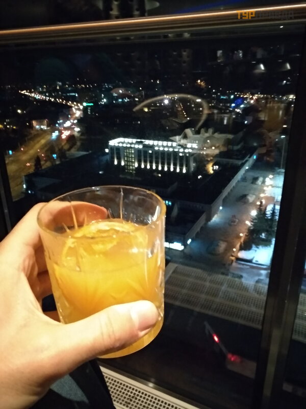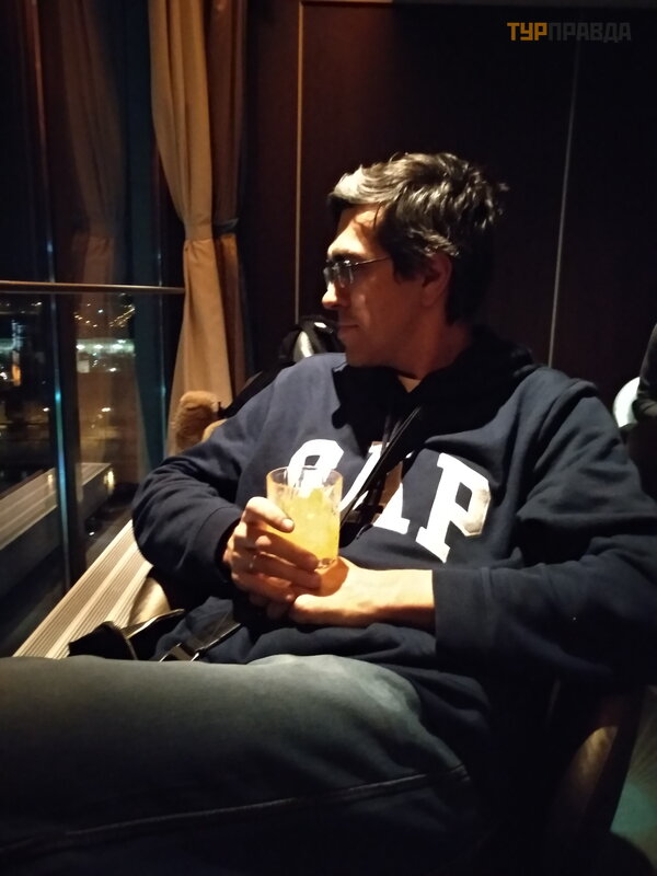 Mergina linkteli ir dingsta. Sė dime ir susmulkiname ryž ių traš kuč ius, kuriuos mums atneš ė kaip sveikinimą . Po poros minuč ių prieina vaikinas, nuskaito mano bilietus iš telefono, laukia, gauna patvirtinimą ir pasiū lo mums už sisakyti du kokteilius iš trijų galimų . Mes su ž mona atsitiktinai pasirenkame pirmuosius du, kurie pasitaiko. Deš imt minuč ių laukimo, ir mums atneš a dvi stiklines su oranž iniu skysč iu ir. . . du š virkš tus su rudu skysč iu. Tai buvo „Lost in Translation“ (sausas Londono dž inas, Choya Umeshu slyvų likeris, sausas Chaoya sake, arbatos sirupas ir laimo sultys). Padavė ja mums paaiš kina, kad paž odž iui mū sų kokteilis vadinasi „Influenza Shot“, o š virkš tuose viskio, kurį į taurę reikia iš spausti patys. Ok, Anyuta visiš kai nieko sau neiš spaudė (nemė gsta stiprių kokteilių ), bet aš viską iš spaudž iau sau. Visą laiką , kol buvome bare, apmaudinė jau Anyutę su praš ymais nufotografuoti mano statusą atitinkanč ias nuotraukas - arba sė dž iu dalykiš kai prie vieno stiklo, tada atsiskyrė lis grož iuosi miesto panorama su kitu stiklu, tada atsainiai gurkš noju. kokteilį , arogantiš kai ž velgdama ž emyn, galų gale ž mona susirgo, ir jie man grą ž ino telefoną su ž odž iais: „Tau reikia, pasidaryk asmenukę!! ! “ ; -)