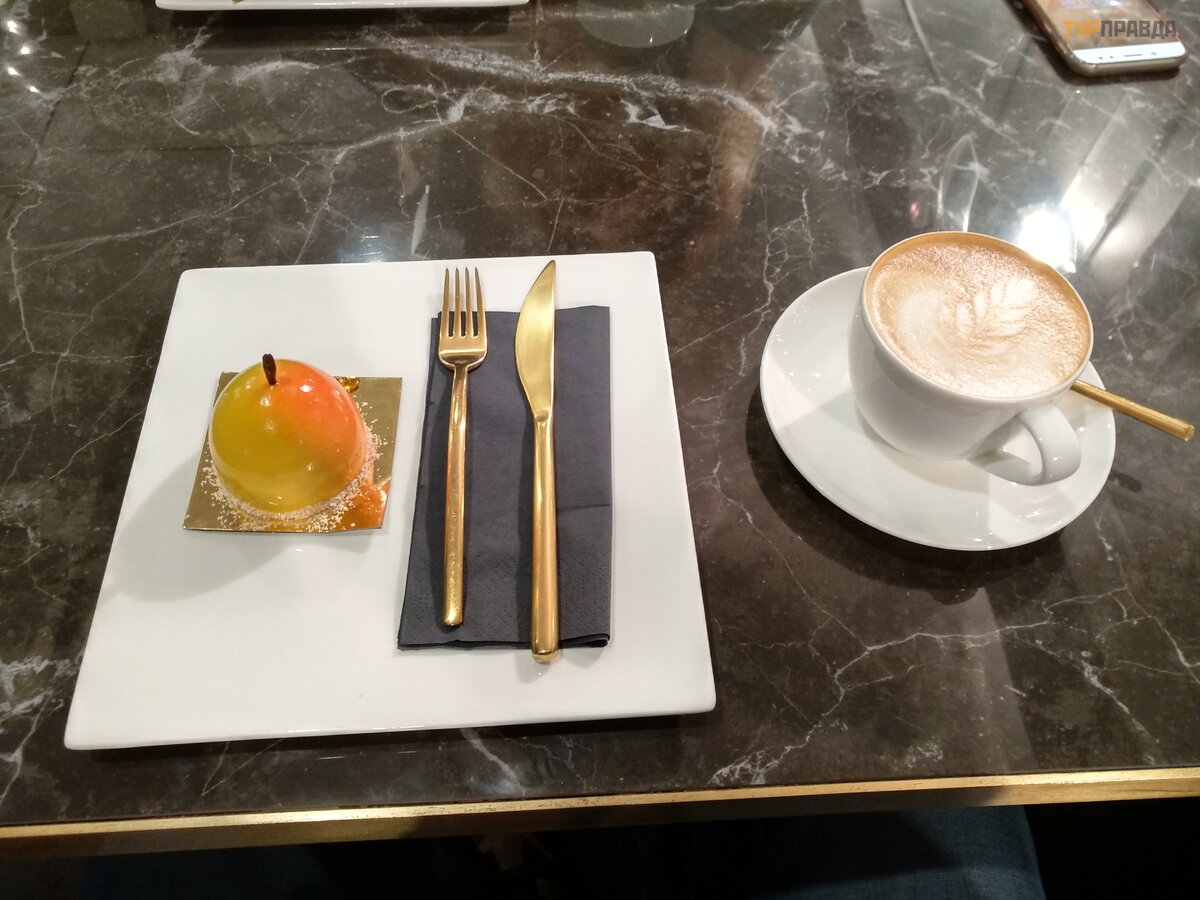 Apskritai susė dome prie staliuko, š i situacija ž moną tikrai už kliuvo, susigė do, pradė jo į kalbinė ti, kad už už sakymą atsiskaitytu kortele, į ką kategoriš kai atsakiau, kad nemokė siu. du kartus desertams ir kavai. Ž mona pasidavė ir padarė me už sakymą , aš už sisakiau kaž ką panaš aus į abrikosą , ž mona susigundė kaž kokia tartale, plius latte ir kapuč ino. Desertai ir kava buvo labai skanū s, aptarnavimas aukš to lygio, jokių priekaiš tų nė ra. Viską suvalgius ir iš gė rus palieku dviejų eurų arbatpinigių ir vė l einu pas vyresnią ją vadybininkę :