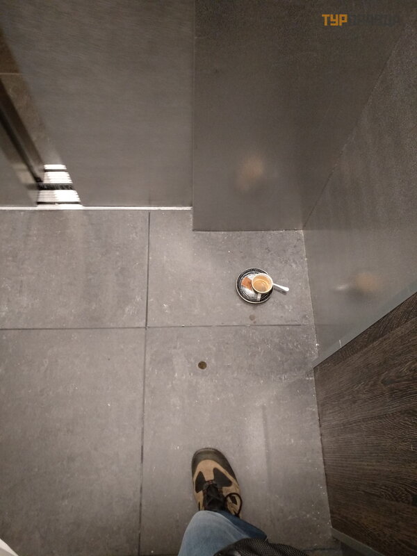 Nuė jome į registratū rą , paklausiau, kaip patekti į barą , jie tyliai nurodė mane į liftą . Į lipame į liftą , iš kart atkreipiu dė mesį į puodelį su kavos likuč iais, kuris vieniš as ant lė kš tutė s kajutė s kampe - kaž kas iš gė rė kavą , bet neš varių indų neturė jo jė gų neš tis, jie tiesiog paliko juos lifto kampe. Taip, pas mus irgi yra necivilizuotų ž monių , bet č ia jie daugiausiai š mė kš č ioja lifte, o č ia tiesiog paliko neš varius indus ; -)